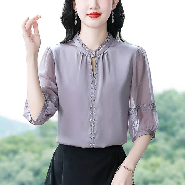 新品 上衣 襯衫 年輕中年媽媽夏裝名牌桑蠶絲上衣洋氣高端貴夫人真絲中袖T恤 鑫奧精品