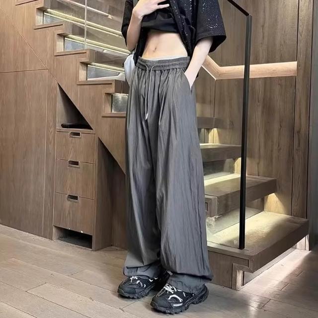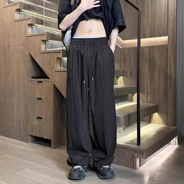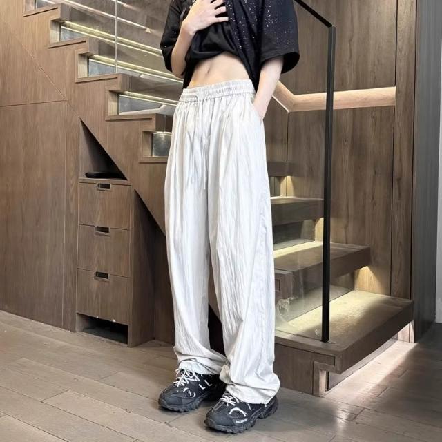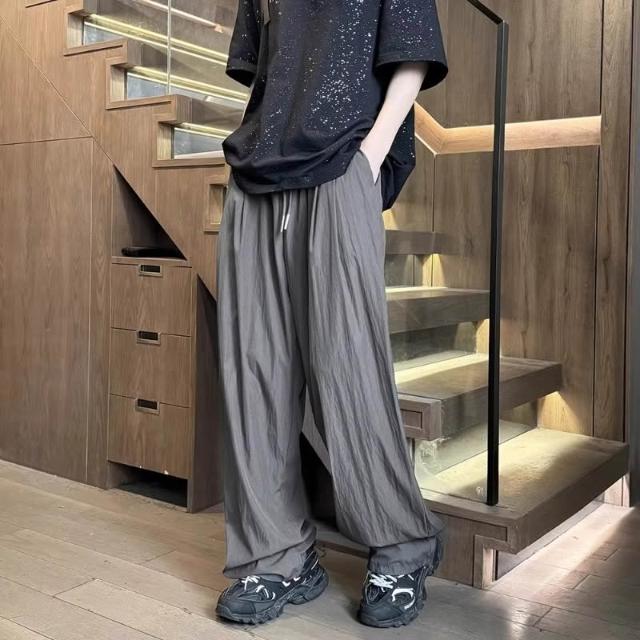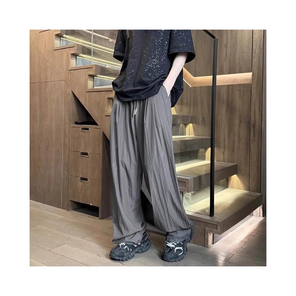 新品 休閒褲 長褲 夏季薄款冰絲長褲男日系潮牌寬松涼感休閑褲百搭痞帥直筒闊腿褲子 鑫奧精品