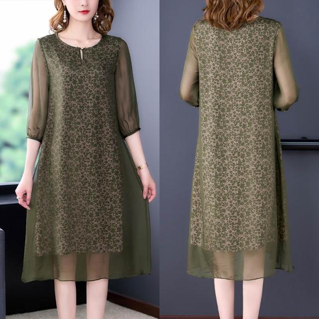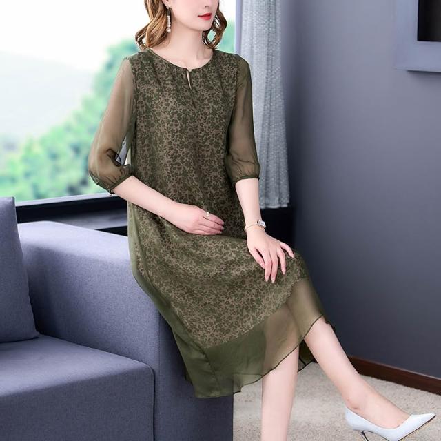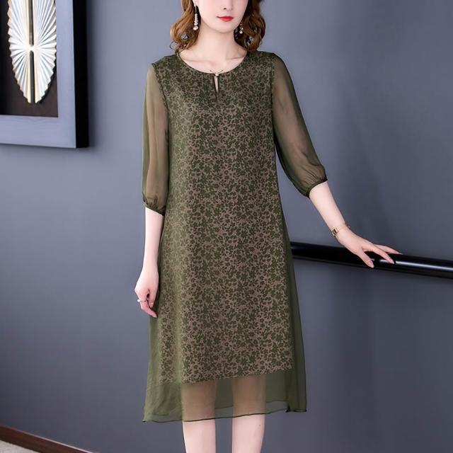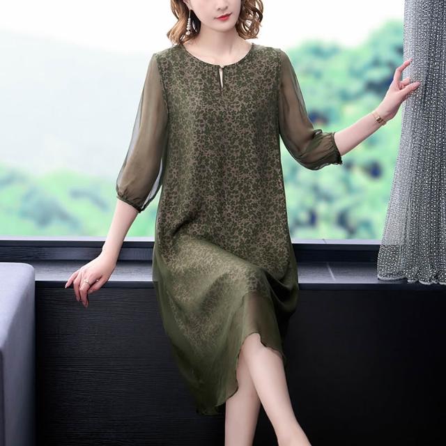新款 裙子 連衣裙 真絲連衣裙2022年新款春秋裝中長款時尚潮流桑蠶絲大牌裙 鑫奧精品