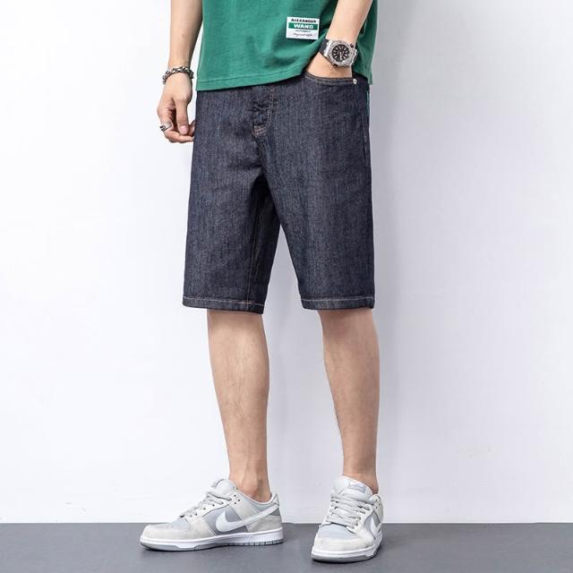 新款 短褲 牛仔短褲 牛仔短褲男式日糸水洗原色深藍現貨青年中腰休閑牛仔短褲男生 鑫奧精品