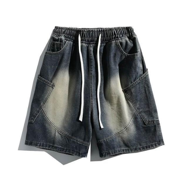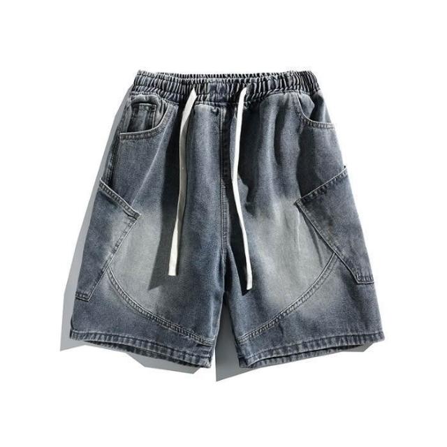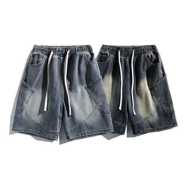 新款 短褲 牛仔短褲 2025新款夏季美式復古寬松牛仔短褲男款休閑薄款潮流中腰五分褲 鑫奧精品