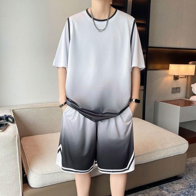 新款 短袖 套裝 夏季冰絲速幹籃球服男孩短袖T恤青少年初中學生大童球衣運動套裝 鑫奧精品