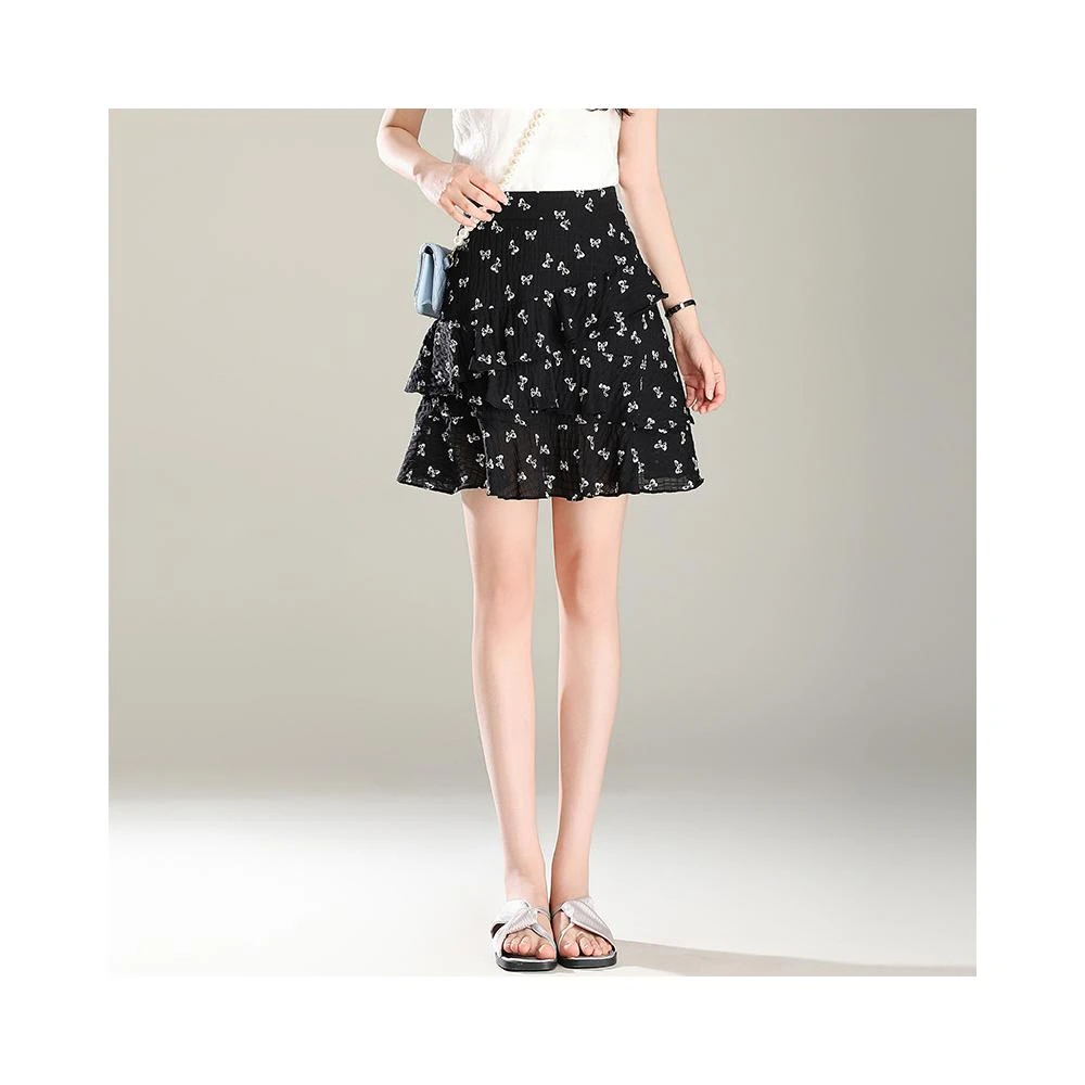 新款 夏季 短裙 夏季蝴蝶結新款碎花印花短裙顯瘦半身裙2026小個子百搭高腰蛋糕裙 鑫奧精品