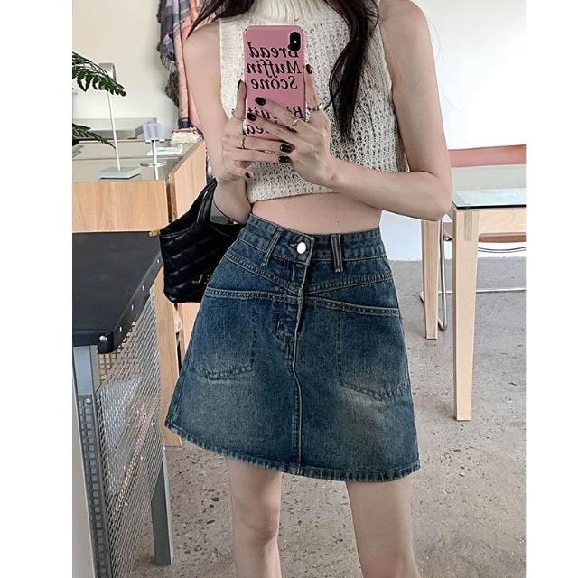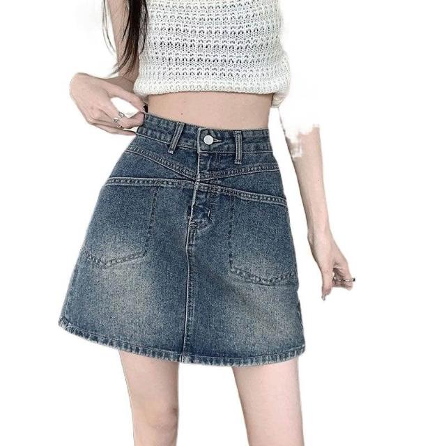 新款 夏季 短裙 a字短裙夏新款設計感女裝2026年短款高腰顯瘦裙子復古牛仔半身裙 鑫奧精品