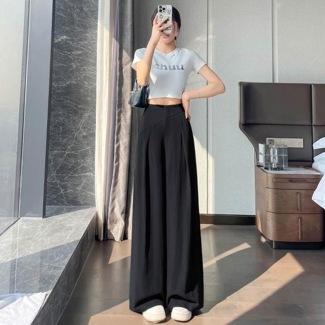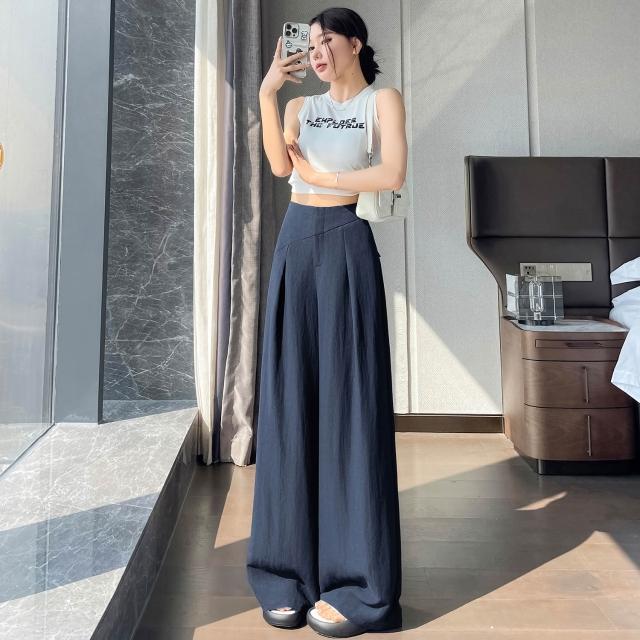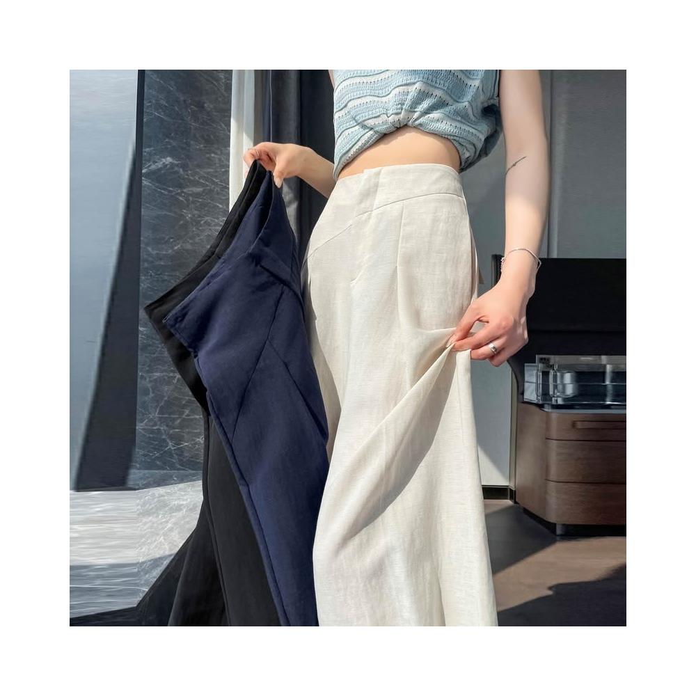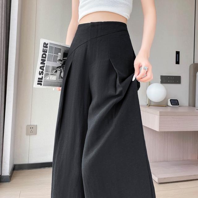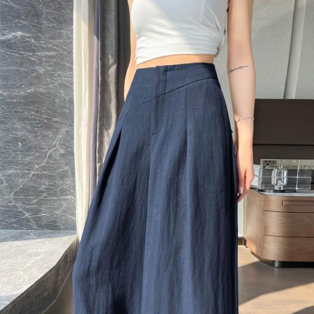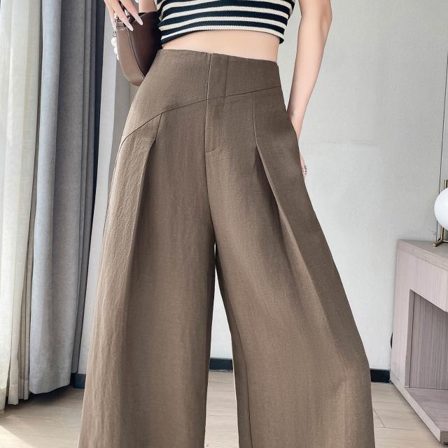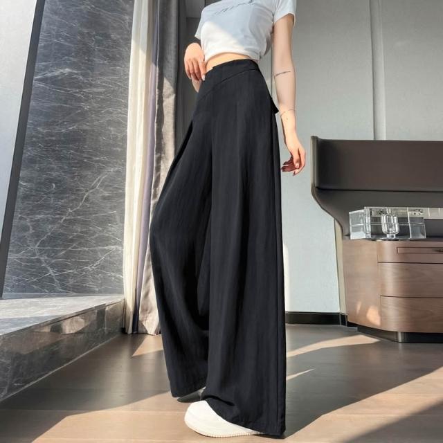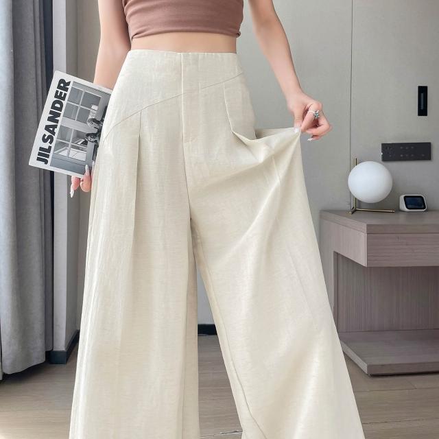 新款 夏季 休閒褲 新款亞麻冰絲闊腿褲女2026夏季高腰顯瘦棉麻山本褲薄款慵懶休閑褲 鑫奧精品