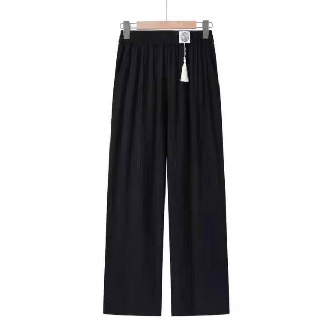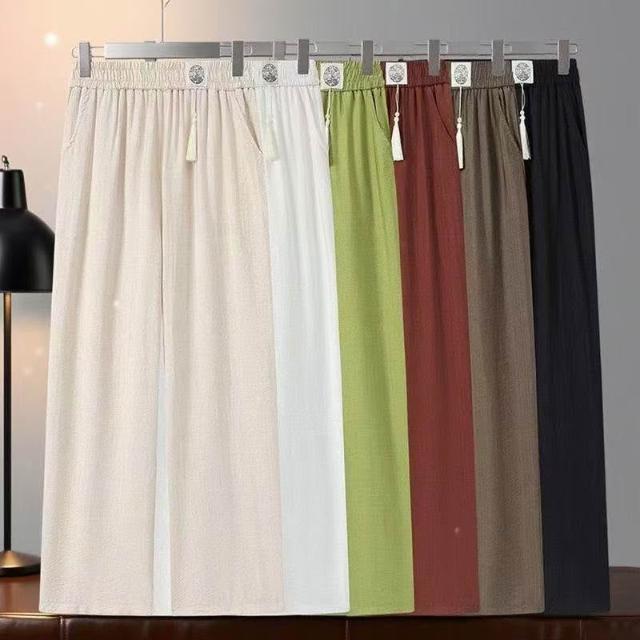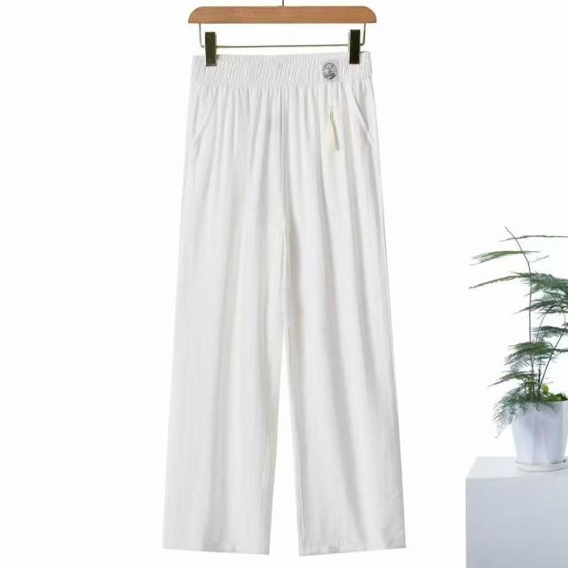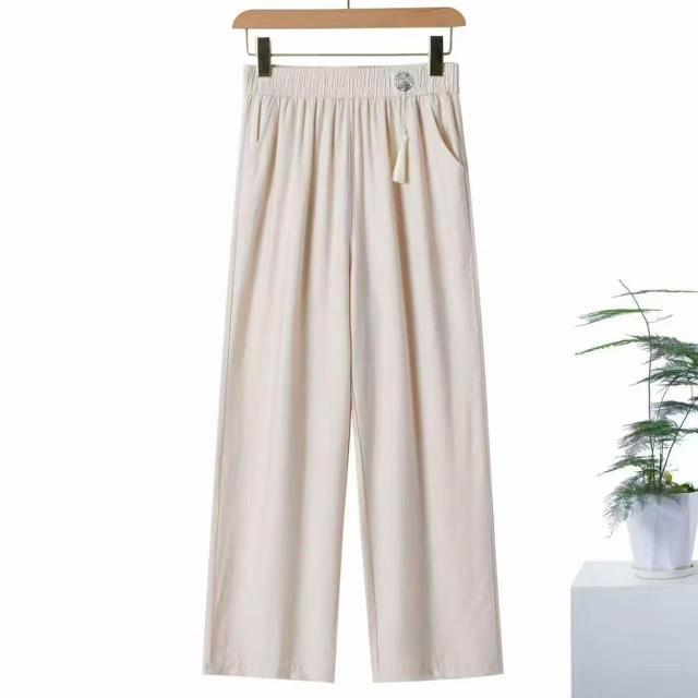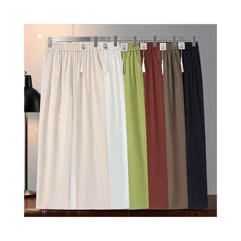 新款 夏季 休閒褲 高腰闊腿褲女夏季薄款九分褲垂感寬松國風直筒休閑中年媽媽褲子 鑫奧精品