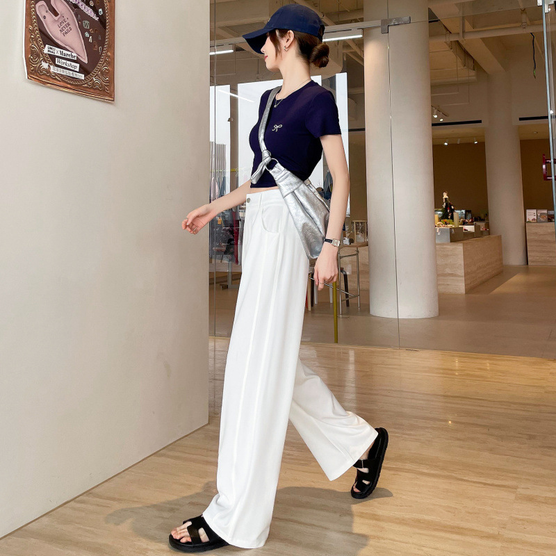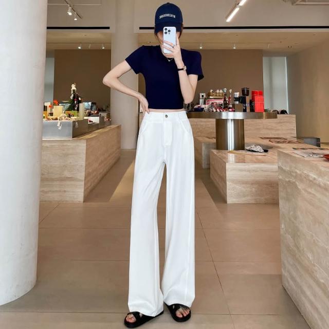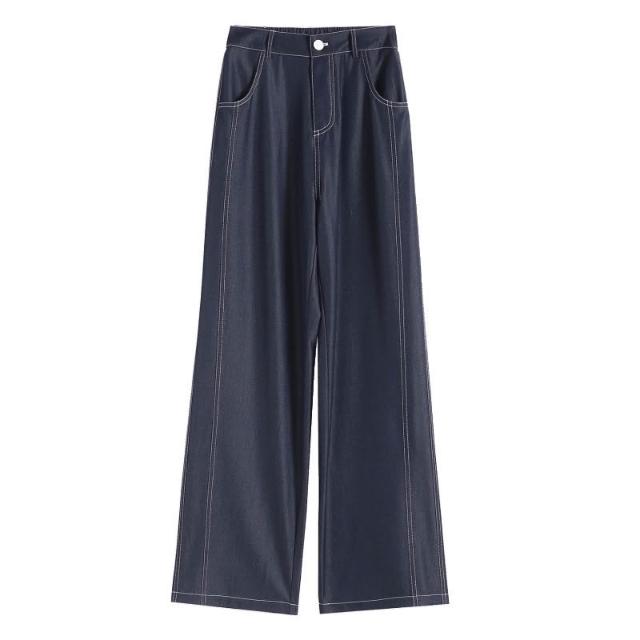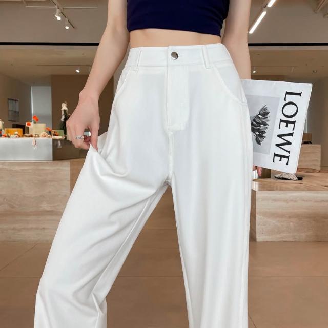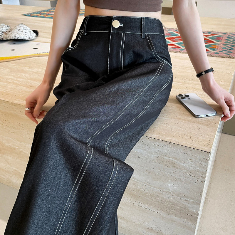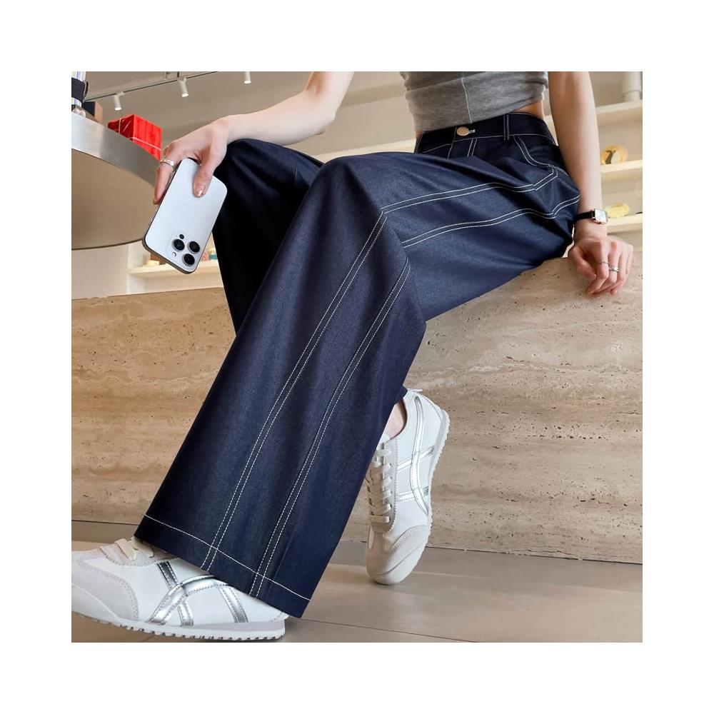 新款 夏季 牛仔褲 實拍萊賽爾仿牛仔女夏季薄款新款高腰垂感小個子冰絲闊腿褲現貨 鑫奧精品