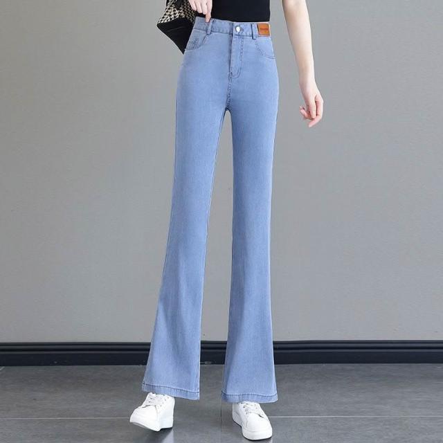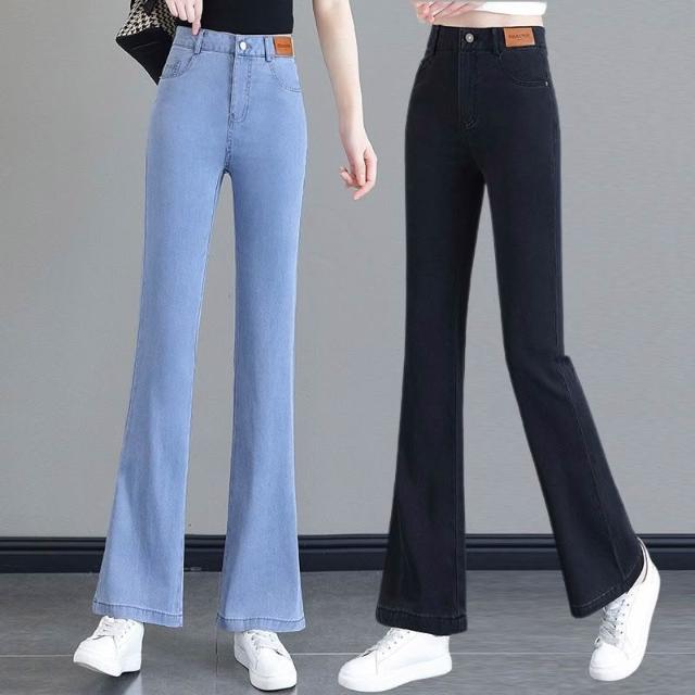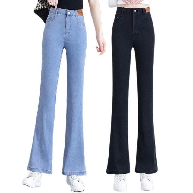 新款 夏季 牛仔褲 夏季天絲喇叭褲牛仔褲女薄款2026新款時尚高腰顯瘦微喇冰絲長褲女 鑫奧精品