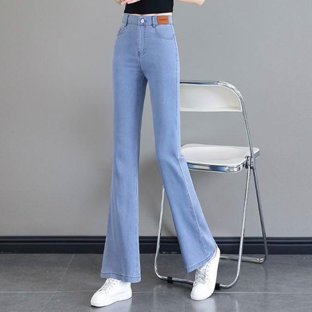 新款 夏季 牛仔褲 夏季天絲喇叭褲牛仔褲女薄款2026新款時尚高腰顯瘦微喇冰絲長褲女 鑫奧精品