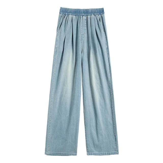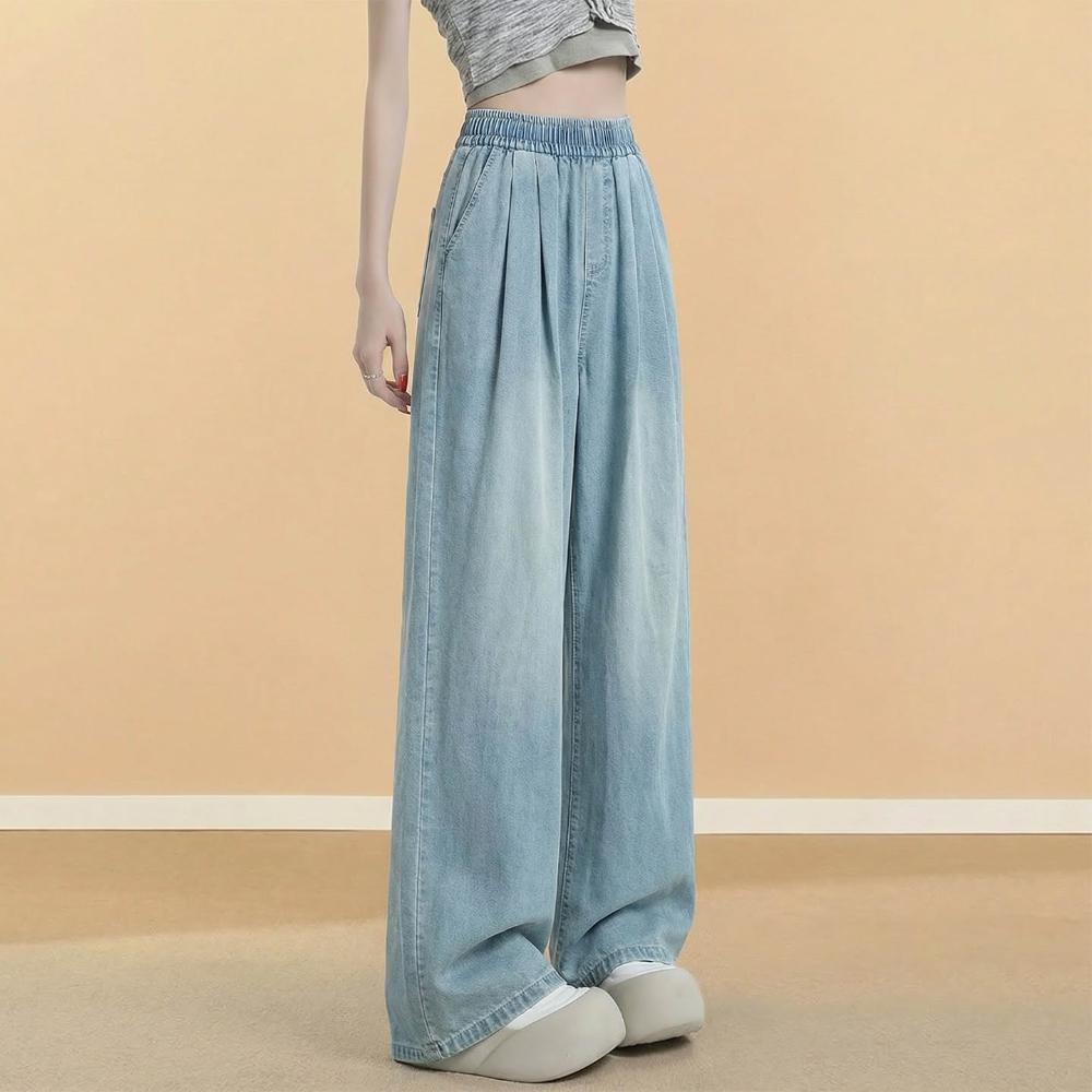 新款 夏季 牛仔褲 天絲直筒牛仔褲女2026新款夏季薄款垂感大碼小個子冰絲闊腿長褲子 鑫奧精品