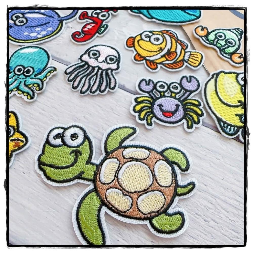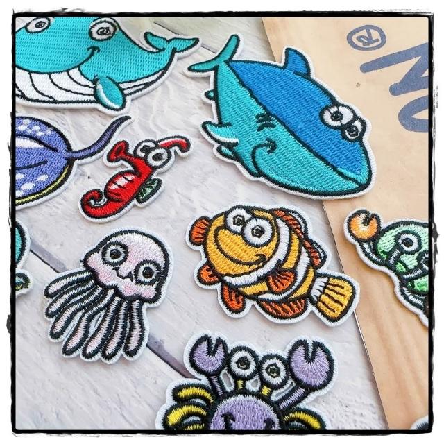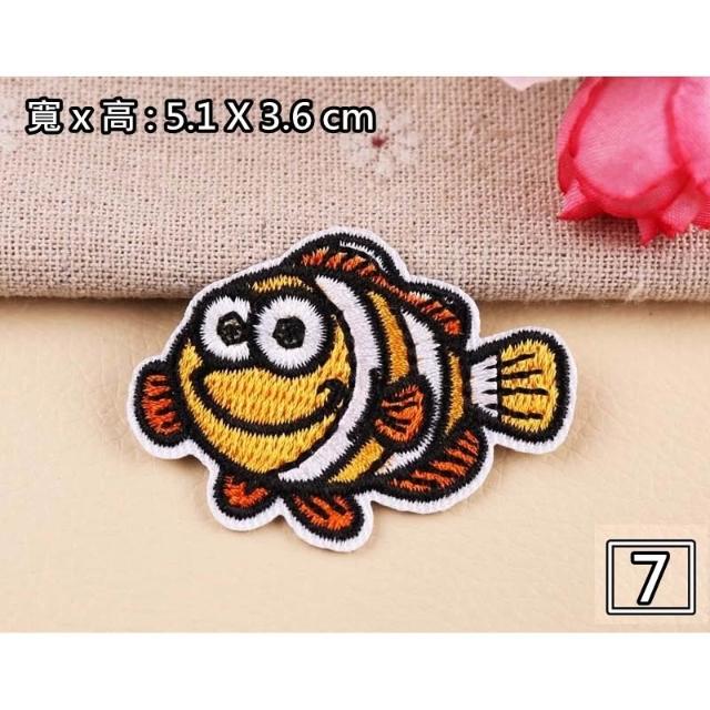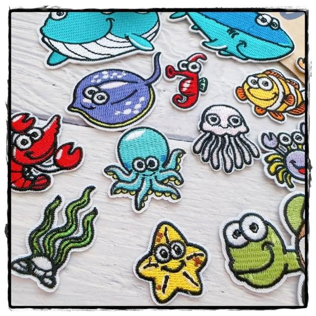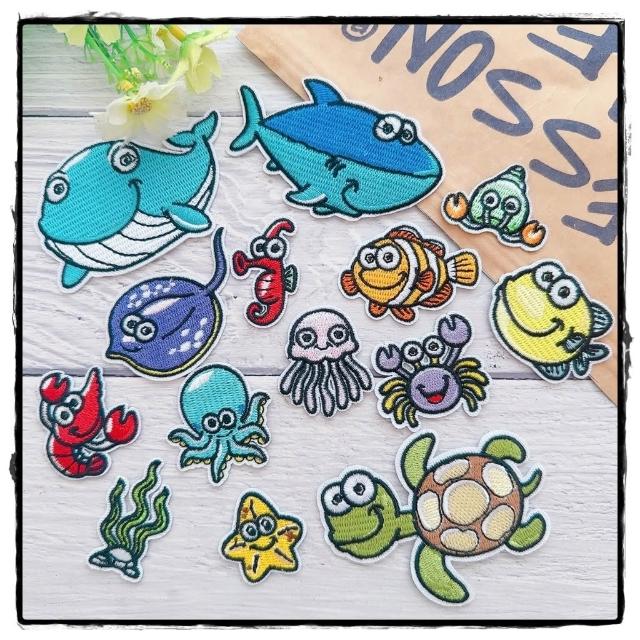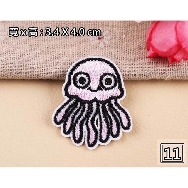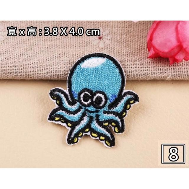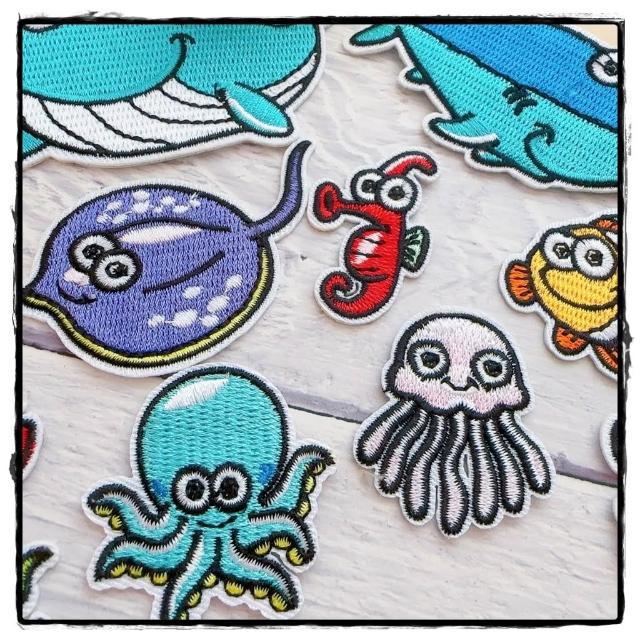 Q11海洋動物 海龜 章魚 海豚 鯨魚 小丑魚 海星 海馬 水母 布章 臂章 布標 刺繡燙布貼 徽章 刺繡布貼