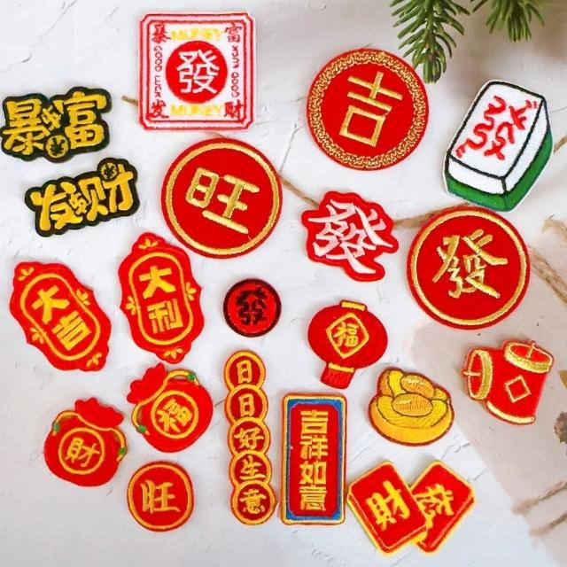免熨燙 h13 刺繡布貼紙 文字布貼紙 魔鬼氈布章 徽章 布貼 臂章 刺繡徽章 刺繡布貼 貼紙 元寶 新年