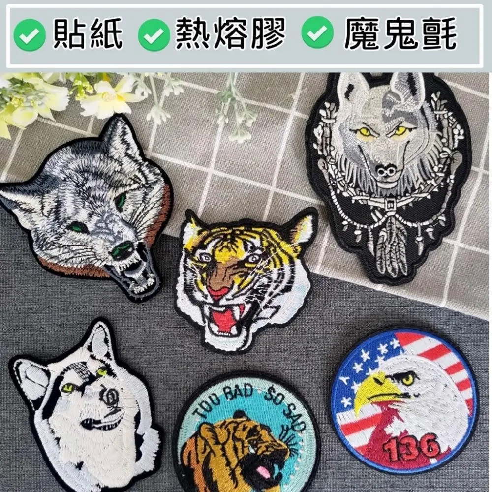 Q20 老虎 狼 老鷹徽章 布貼 刺繡燙布貼 徽章 刺繡布貼 臂章 熨燙貼 熨燙布貼 Patch 魔鬼氈布章