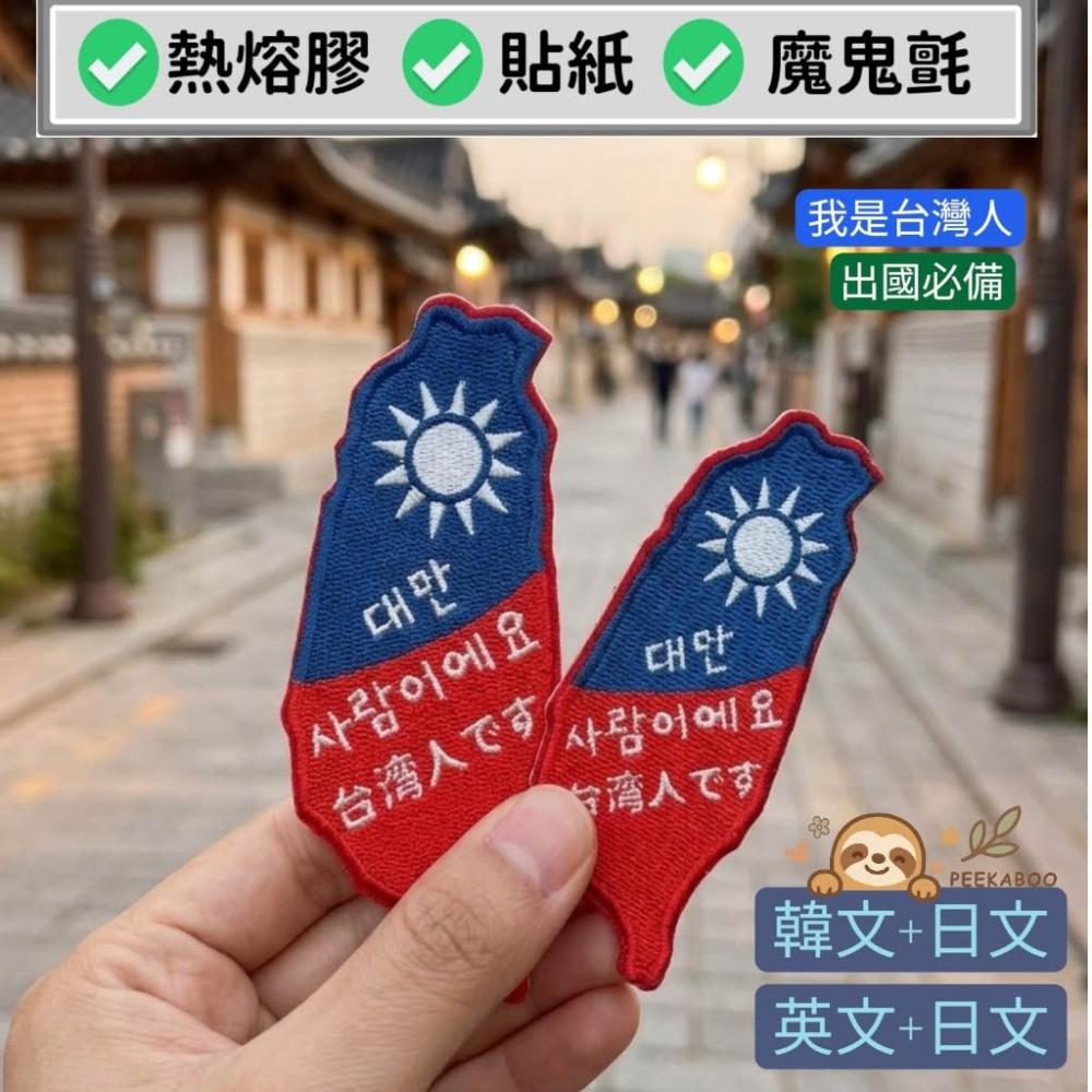 皮卡照布Y4 滿繡台灣造型布貼紙 台灣臂章 國旗徽章 台灣魔鬼氈 我是台灣人徽章 韓文 國旗魔鬼氈布章 台灣刺繡布章