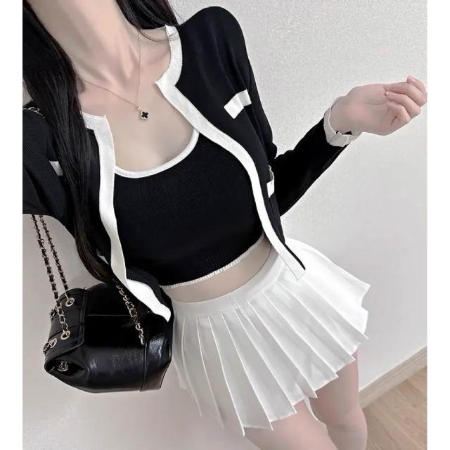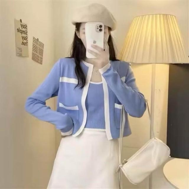 DREAM ♡小香針織上衣♡ 女裝新款韓版INS小香風氣質套裝 2件式套裝 小香風 針織套裝 小香外套 秋裝套裝 2件式