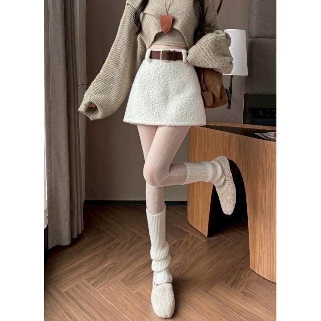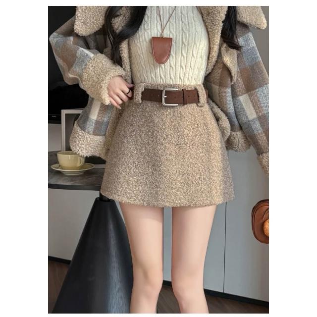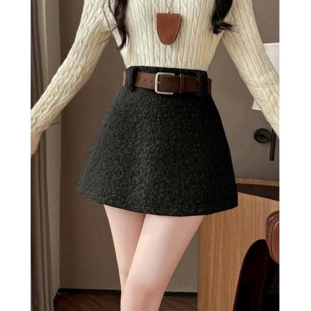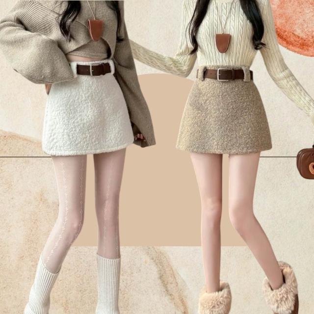 DREAM ♡顯瘦羊羔毛A字裙♡ 秋冬韓版女裝新款 韓版INS韓系女裝 羊羔毛 毛毛裙子 短裙 迷你裙 保暖裙子 皮帶
