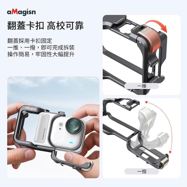 aMagisn 阿邁影石 Insta360 GO Ultra 新版 金屬兔籠 快拆保護邊框