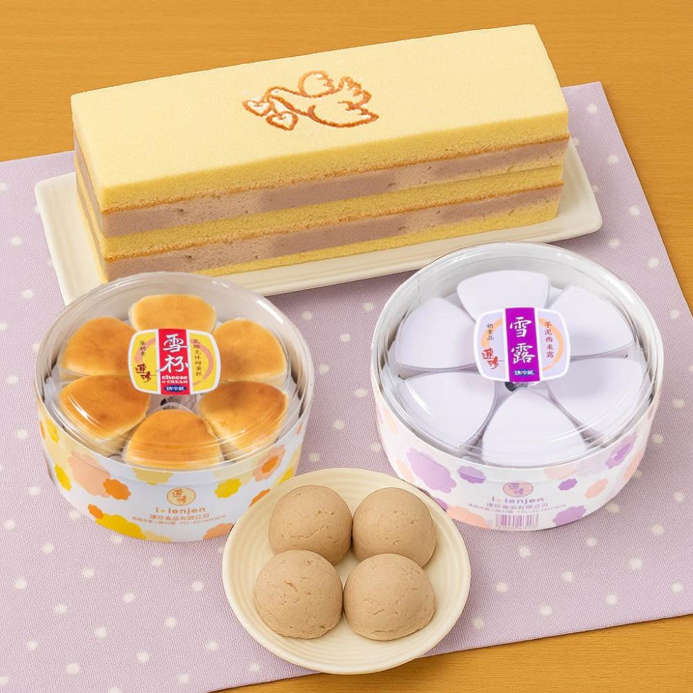 基隆連珍芋泥球(8入)+雪露(6入)+雪杯(6入)+雙層芋泥蛋糕1條