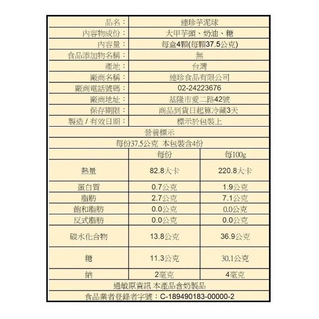 基隆連珍芋泥球16顆+雙層芋泥蛋糕2條
