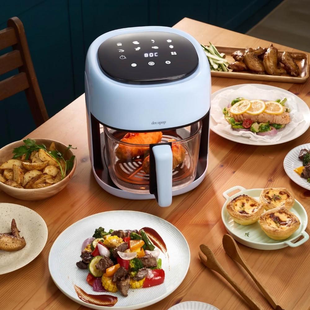 decopop智能觸控玻璃氣炸鍋4.5L大容量 DP-107(智能控溫/不沾油好清洗/360度均勻加熱)