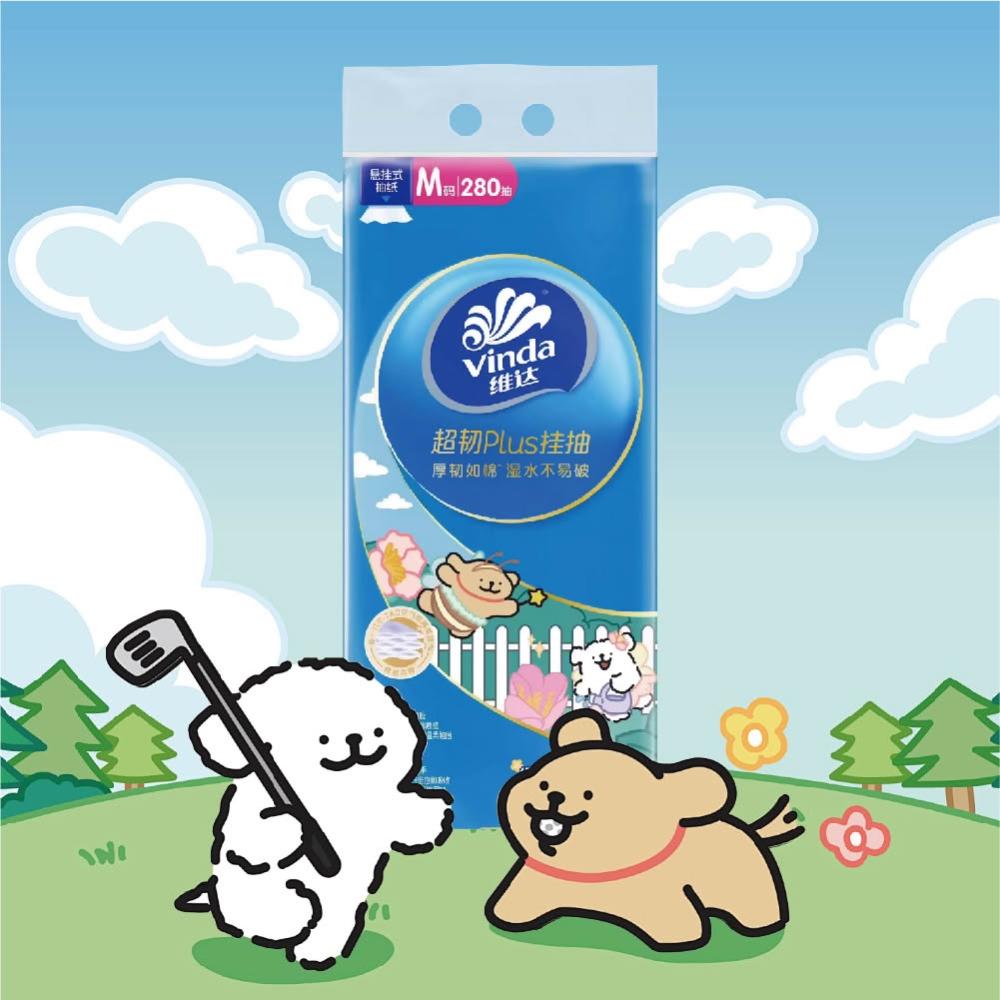 Vinda 維達線條小狗聯名款 掛式3層衛生紙 280抽*1包 尺寸14.6*19.5cm 加厚立體壓花 100%原生木漿 抽取衛生紙