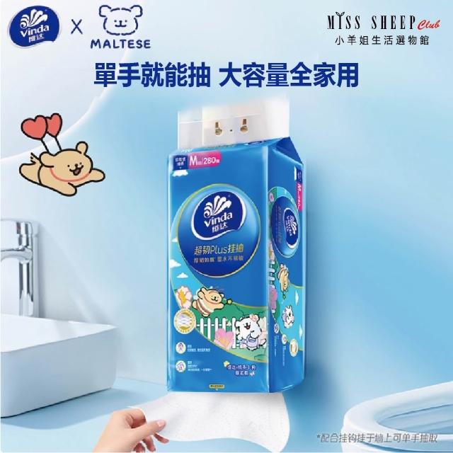 Vinda 維達線條小狗聯名款 掛式3層衛生紙 280抽*1包 尺寸14.6*19.5cm 加厚立體壓花 100%原生木漿 抽取衛生紙