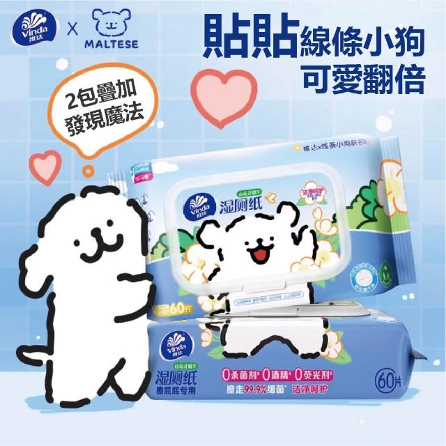 Vinda 維達線條小狗聯名款 可沖式濕式衛生紙 280抽*1包 尺寸20*15cm 山茶花精華 EDI純水 一次性清潔濕巾