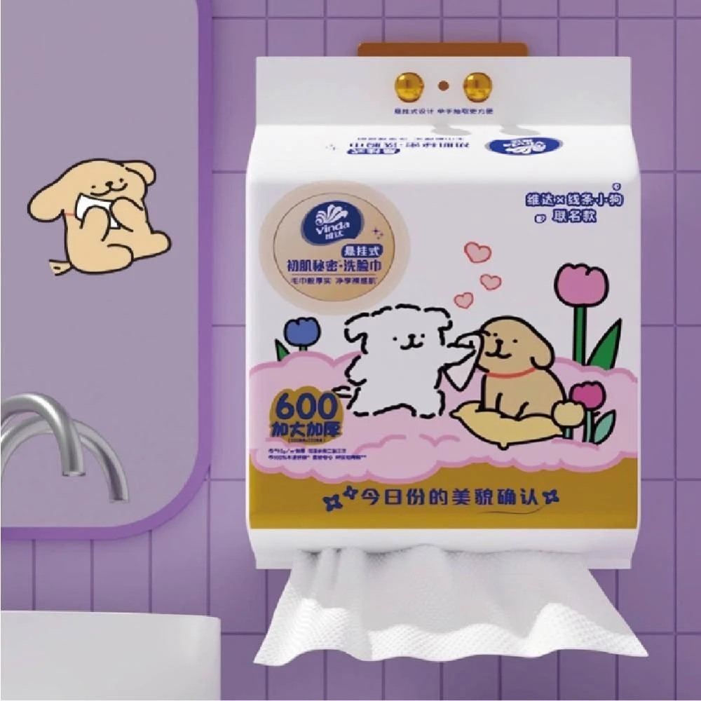 Vinda 維達線條小狗聯名款 掛式雙面洗臉巾 144抽*1包 尺寸20*23cm 雙面加厚珍珠紋 乾濕兩用
