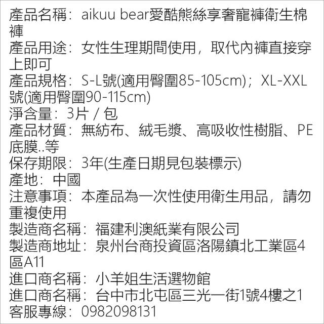 愛酷熊 超薄安睡褲 每包3片裝 S-L-XL-XXL 超能吸 柔軟如小內褲