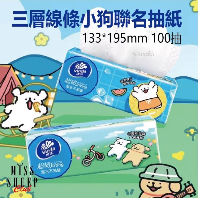 Vinda 維達線條小狗聯名款抽式衛生紙 100抽 3層加厚立體壓花 19.5 x 13.3cm 100%原生木漿