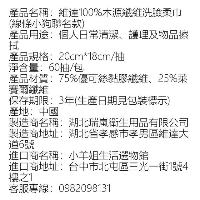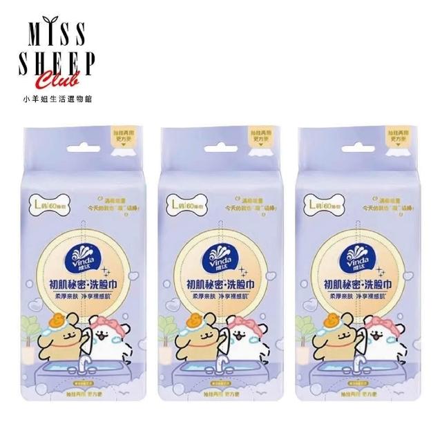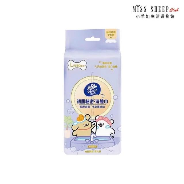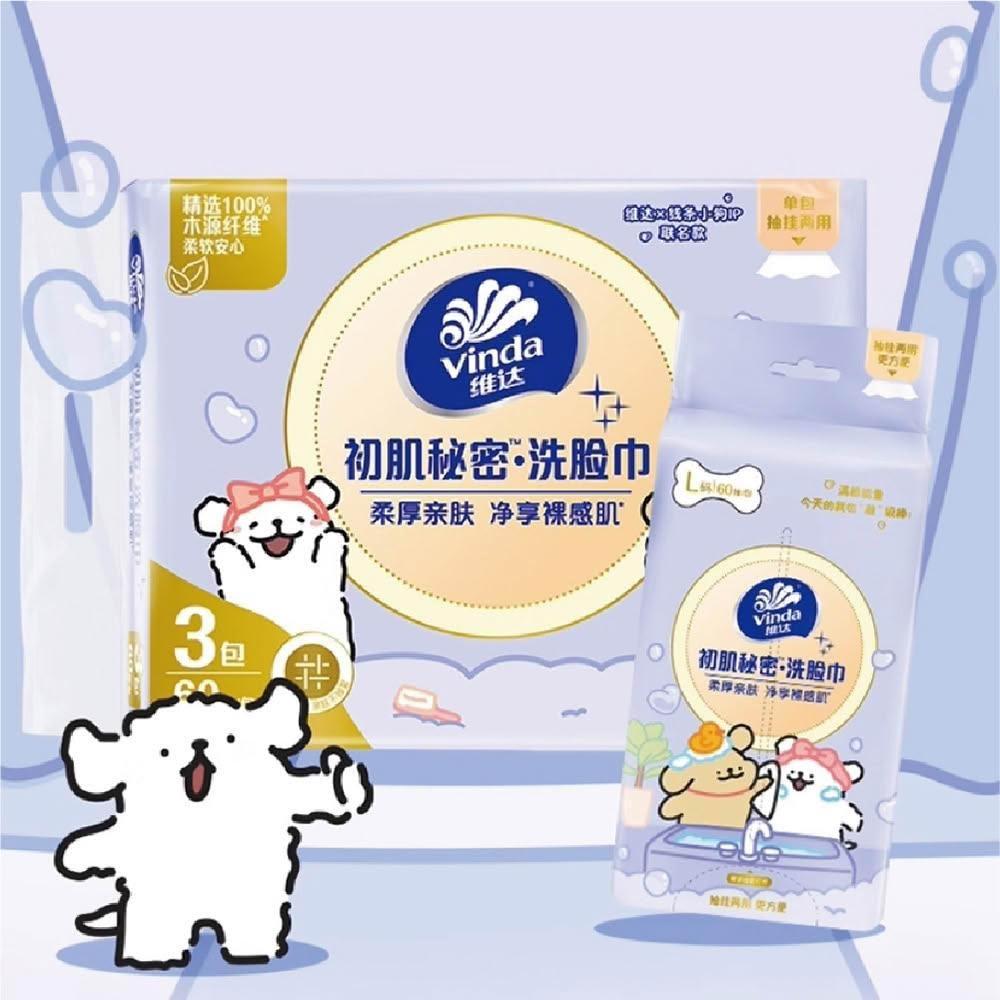 Vinda 維達線條小狗抽式洗臉巾 60抽170克 20 x 18cm 精選加厚100%木源材質 乾濕兩用洗臉巾