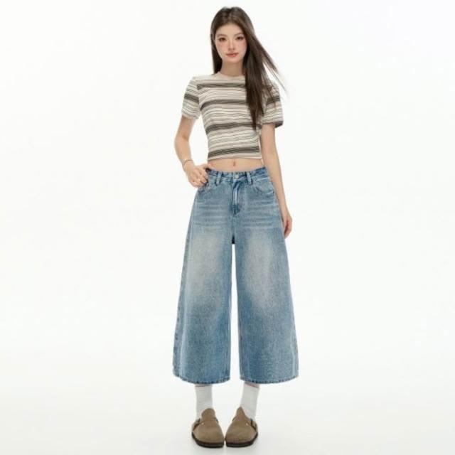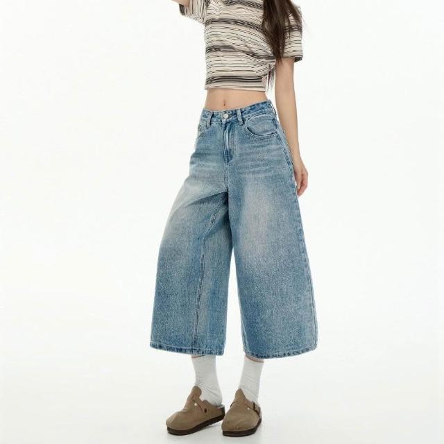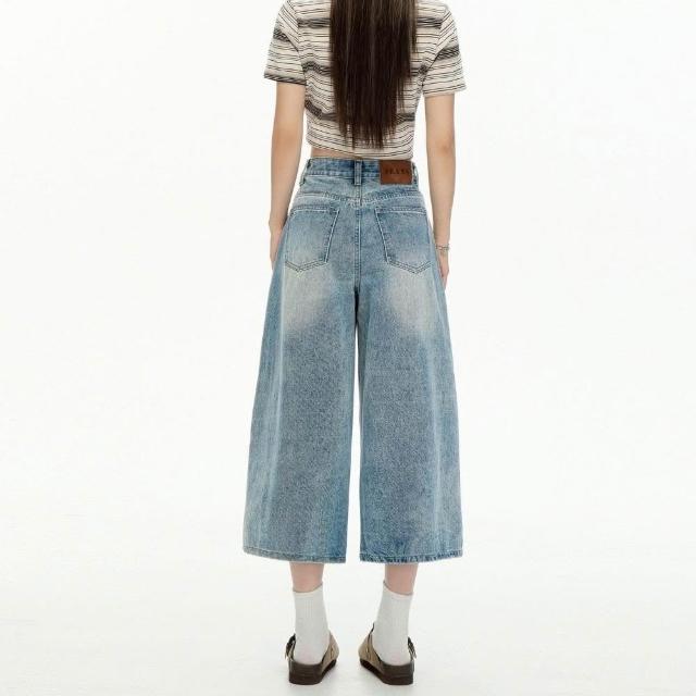 新品 含發票 淺藍色高腰直筒八分牛仔褲女2026年夏季新款寬松顯瘦牛仔百搭中褲