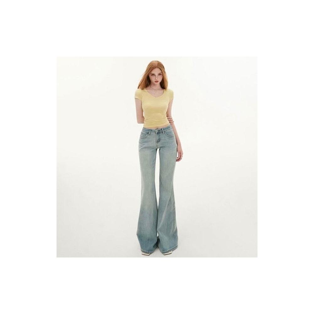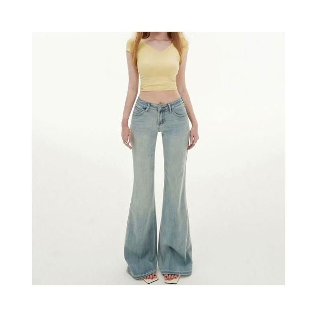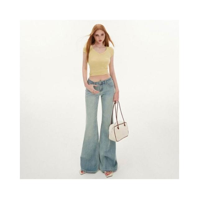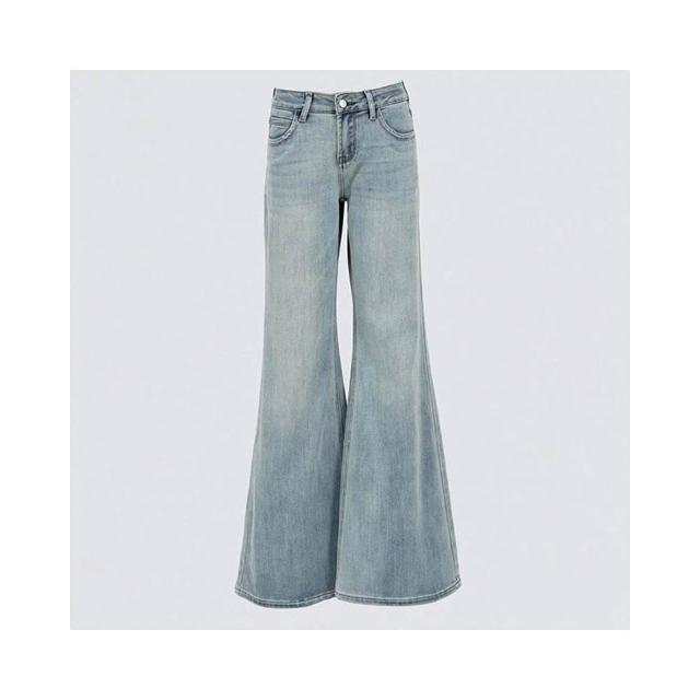 新品 含發票 YC&美式復古低腰辣妹喇叭褲修身顯瘦百搭春夏牛仔褲女&長褲加長