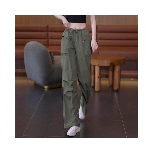 新品 含發票 紫色速幹工裝褲女夏季薄款高腰寬松顯瘦休閑闊腿長褲拖地傘兵褲子