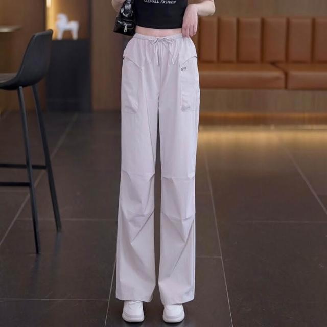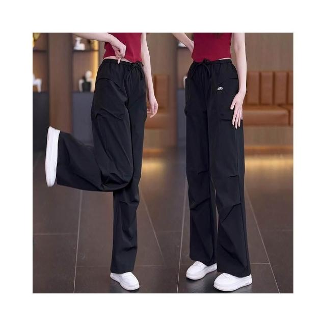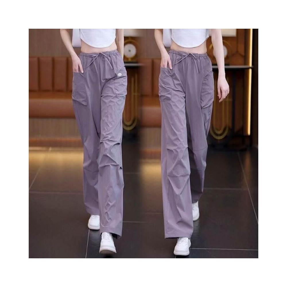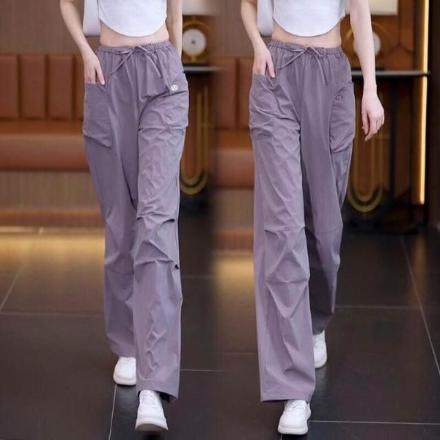 新品 含發票 紫色速幹工裝褲女夏季薄款高腰寬松顯瘦休閑闊腿長褲拖地傘兵褲子
