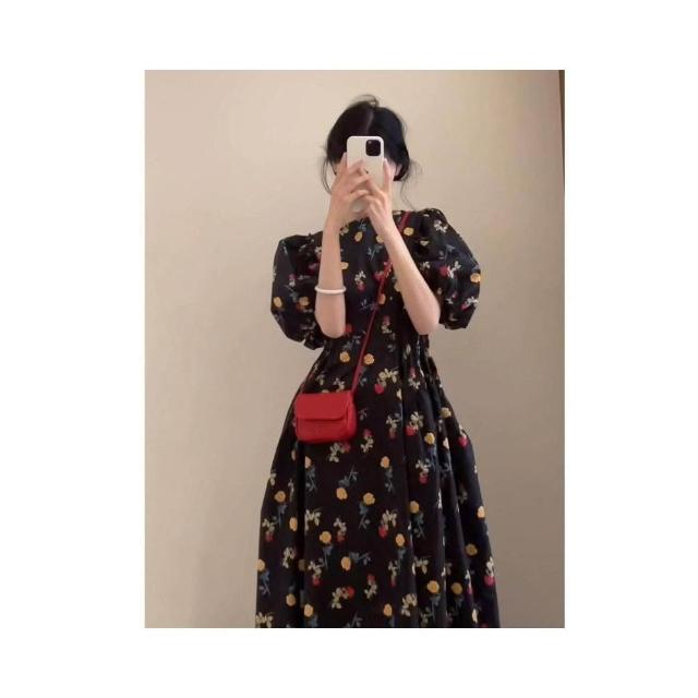 新品 含發票 時尚復古高級感碎花連衣裙女2026年夏季小眾設計感顯瘦寬松長裙子