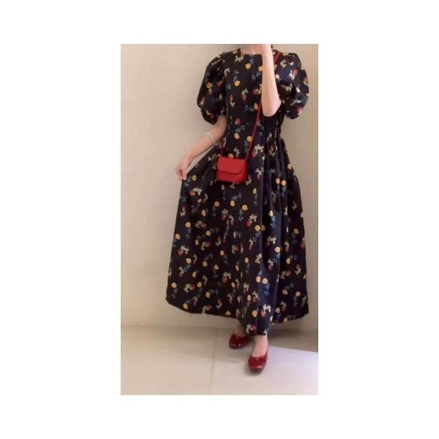 新品 含發票 時尚復古高級感碎花連衣裙女2026年夏季小眾設計感顯瘦寬松長裙子