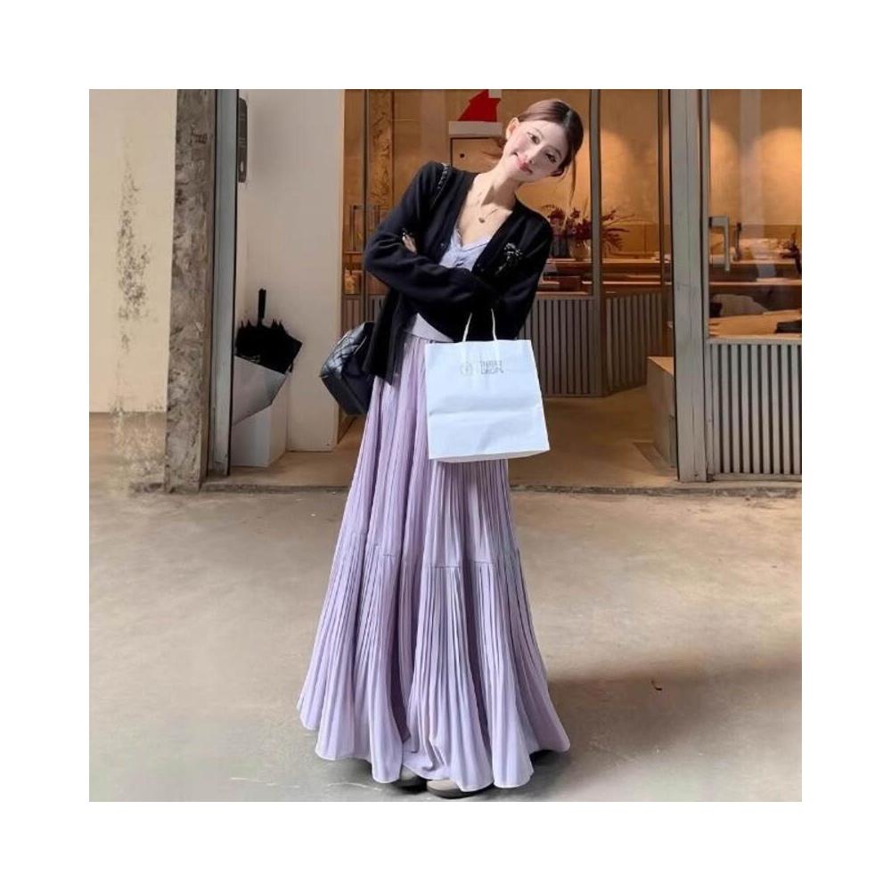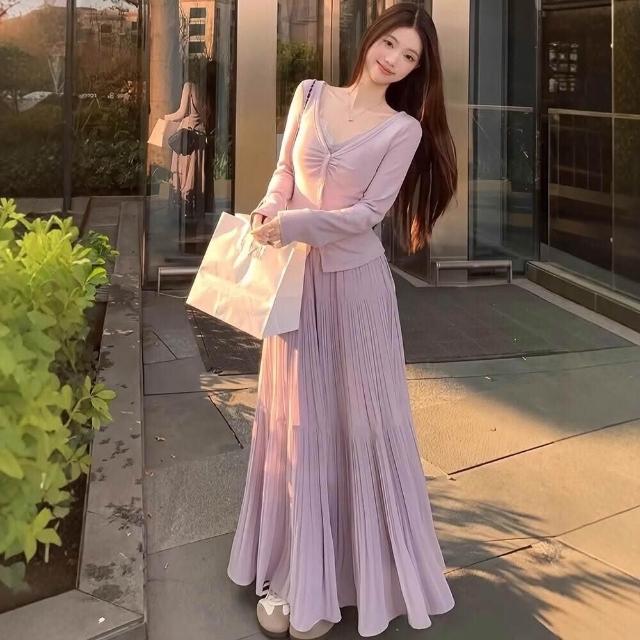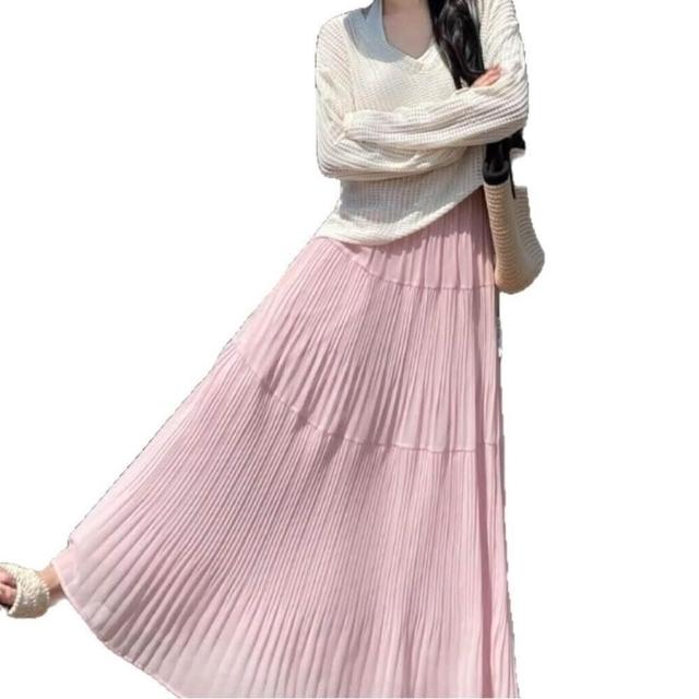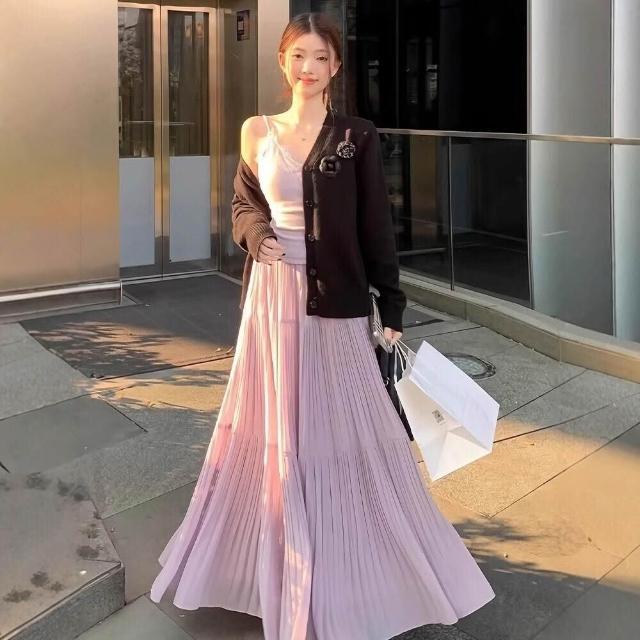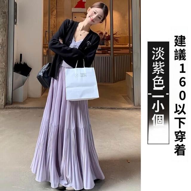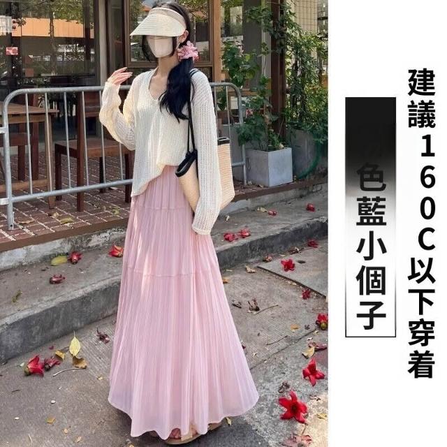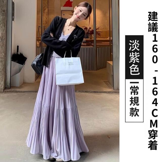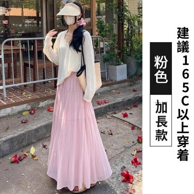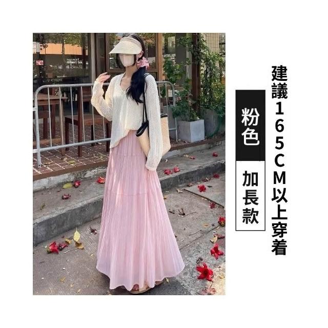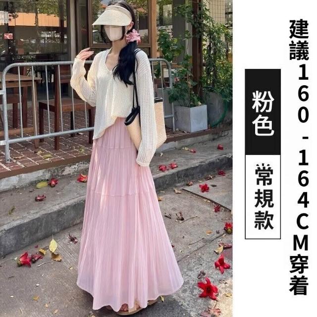 新品 含發票 紫色雪紡半身裙女夏高腰顯瘦傘裙小個子百搭壓褶A字裙中長款A4358