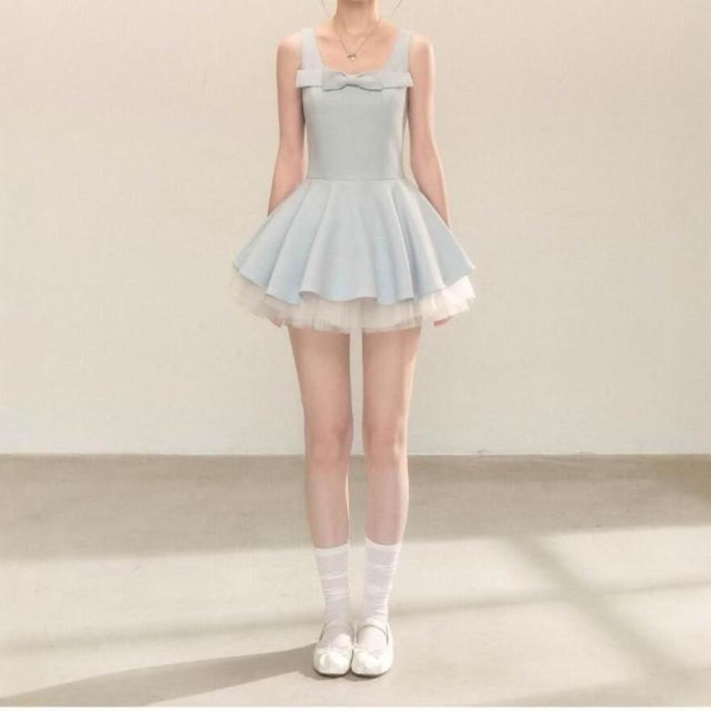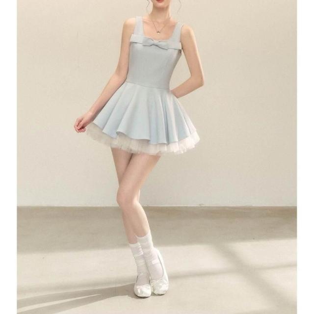 新品 含發票 吊帶連衣裙夏季收腰顯瘦高級感拼接網紗蓬蓬裙女千金感連衣裙