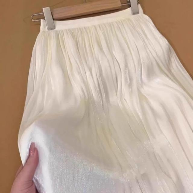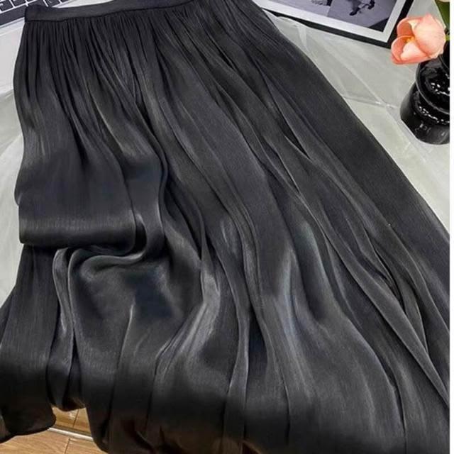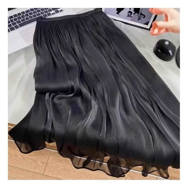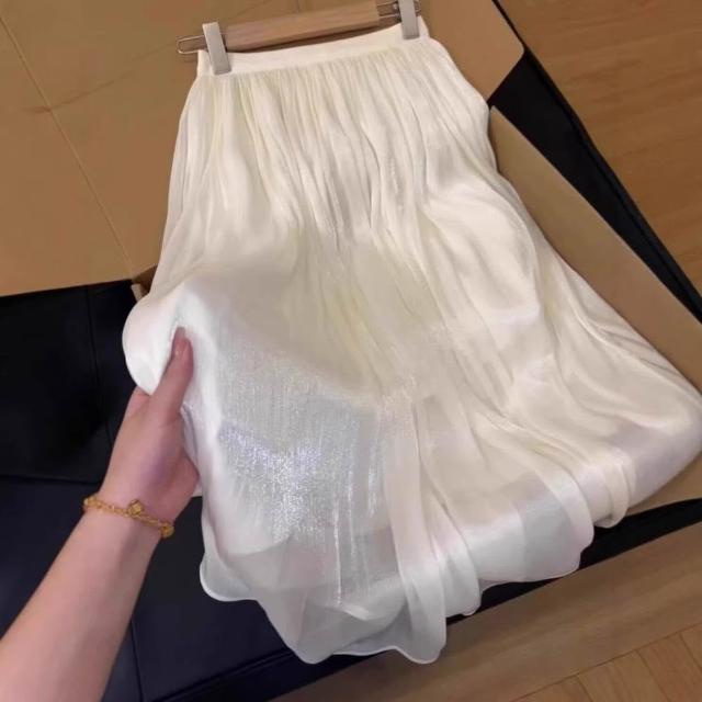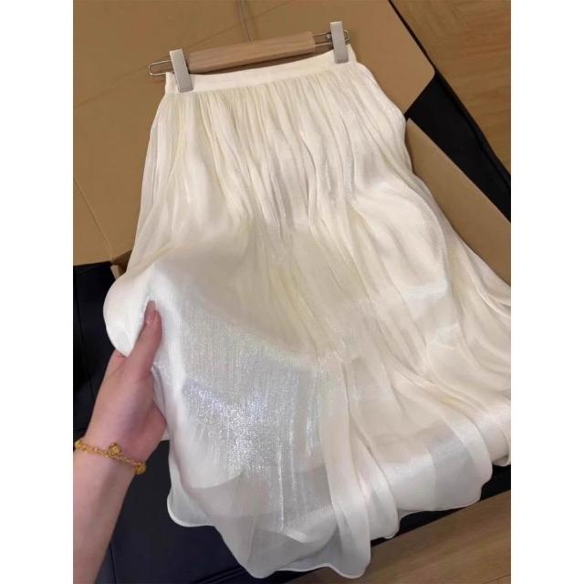 新品 含發票 流光金紗質中長款半身裙2026夏季新款高腰a字流光珠光紗長裙A3777