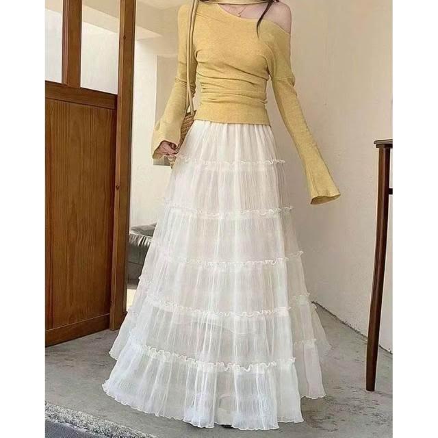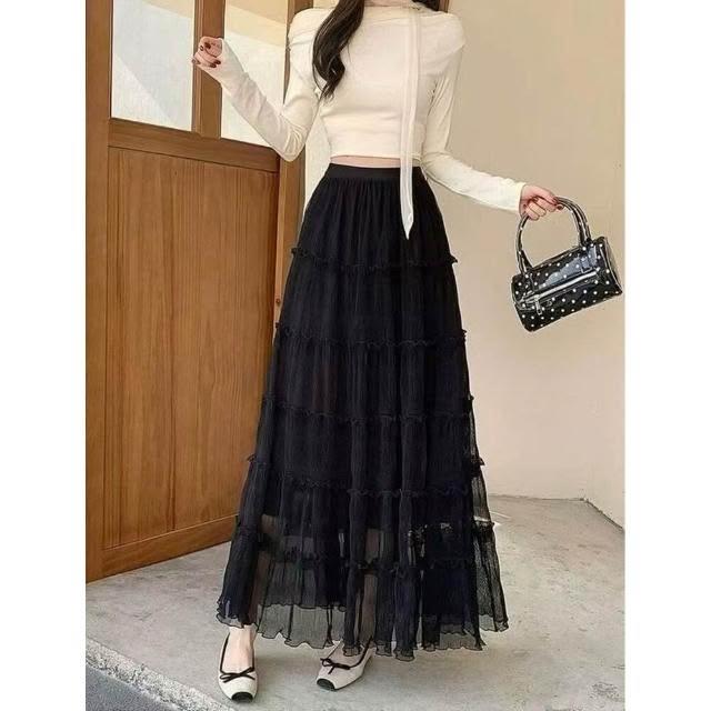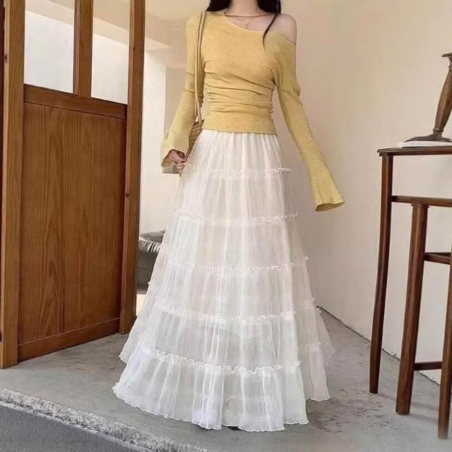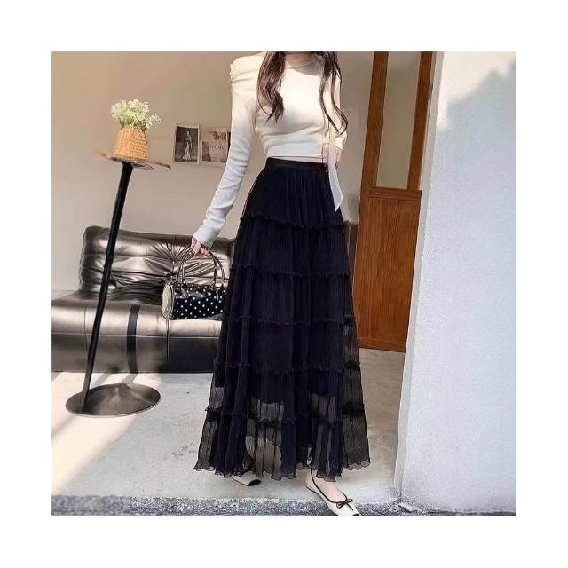 新品 含發票 白色半身裙女春夏新款甜美風層層蛋糕裙休閑垂感a字大擺長裙