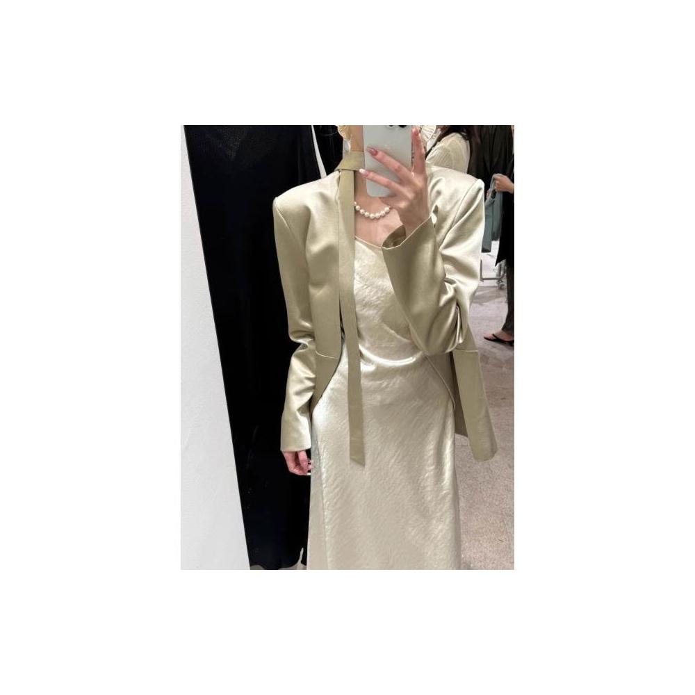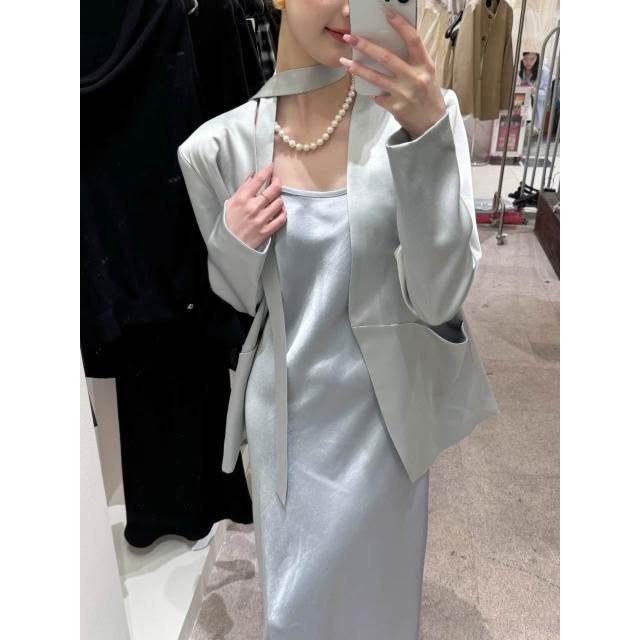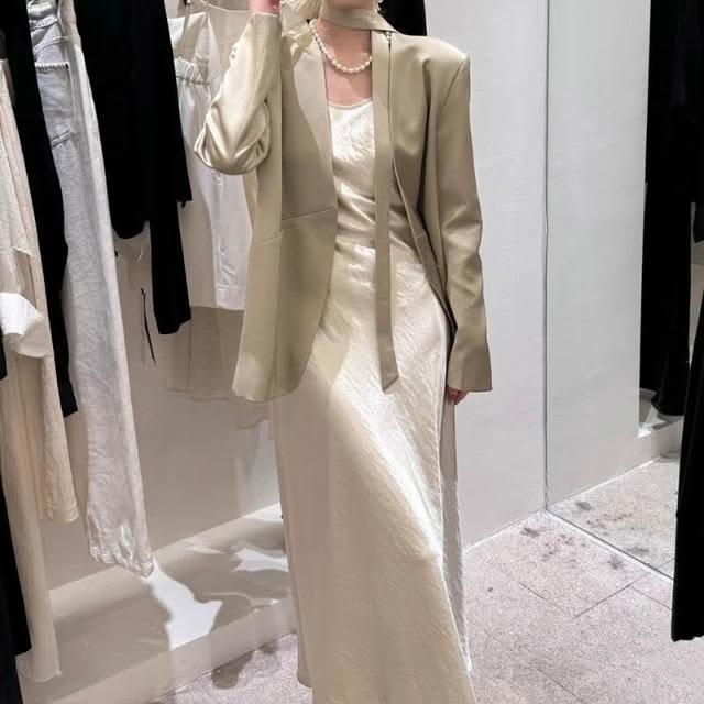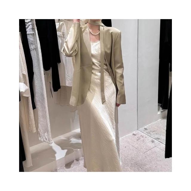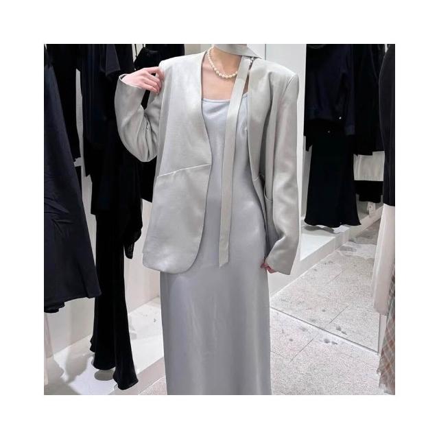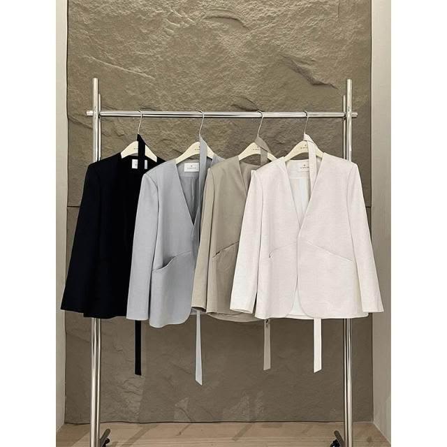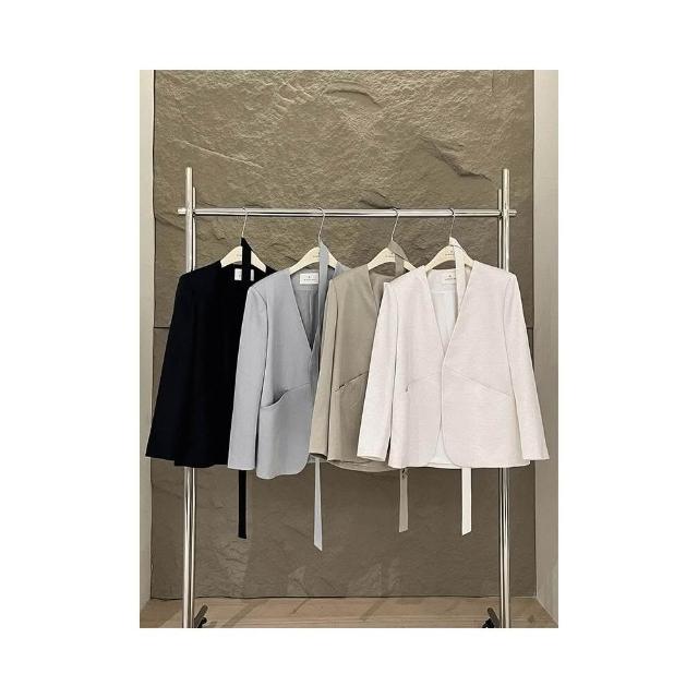 新品 含發票 2026春季新款高級感西裝外套女百搭寬松氣質飄帶無領口袋西服ins