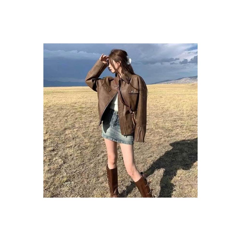 新品 含發票 棕色皮衣外套女春秋新款美拉德美式復古pu皮小個子機車服夾克