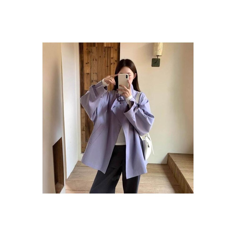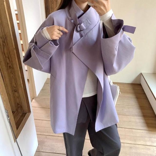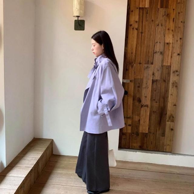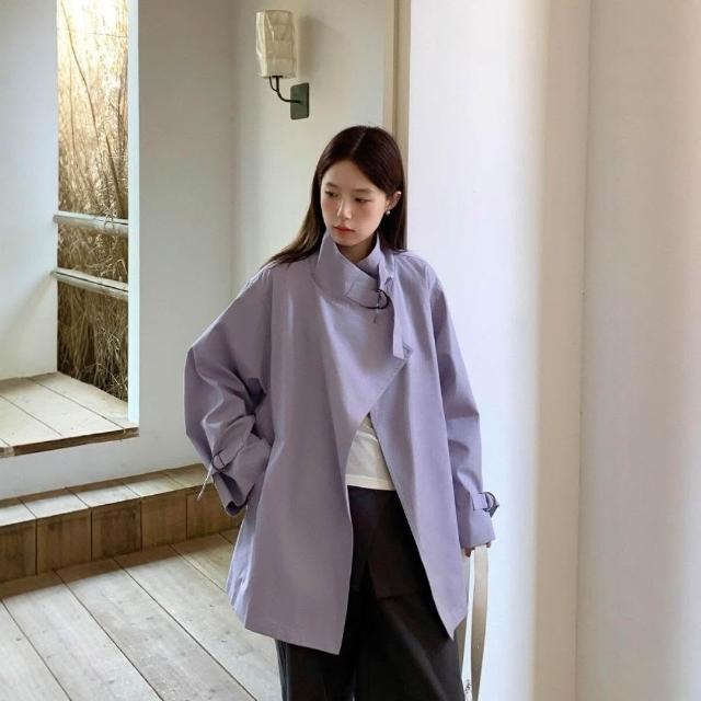 新品 含發票 英倫風立領風衣女2026春季新款設計感慵懶簡約百搭顯瘦寬松外套