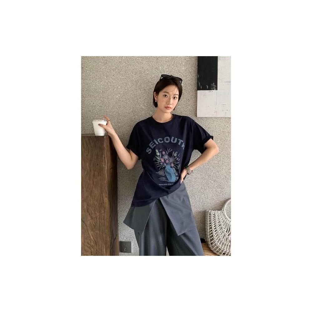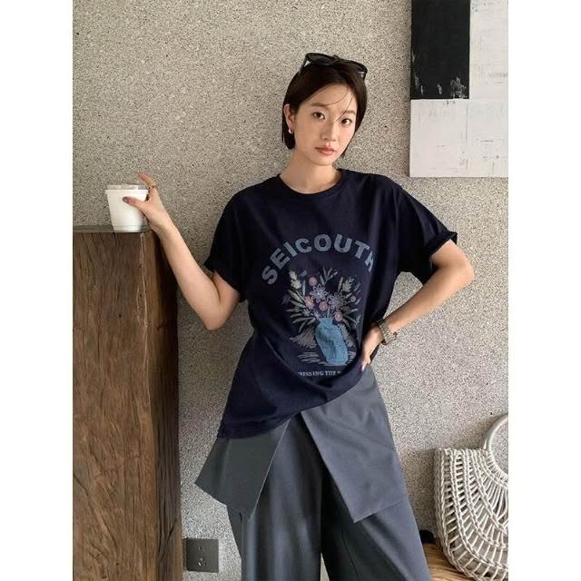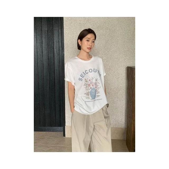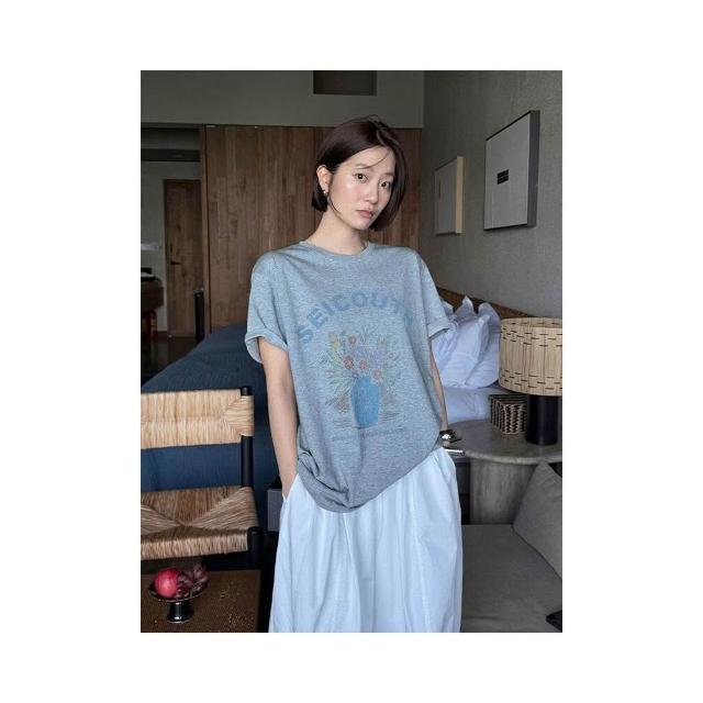 新品 含發票 THE MIND復古字母手繪印花T恤2026春季寬松休閑短袖上衣女T6087C