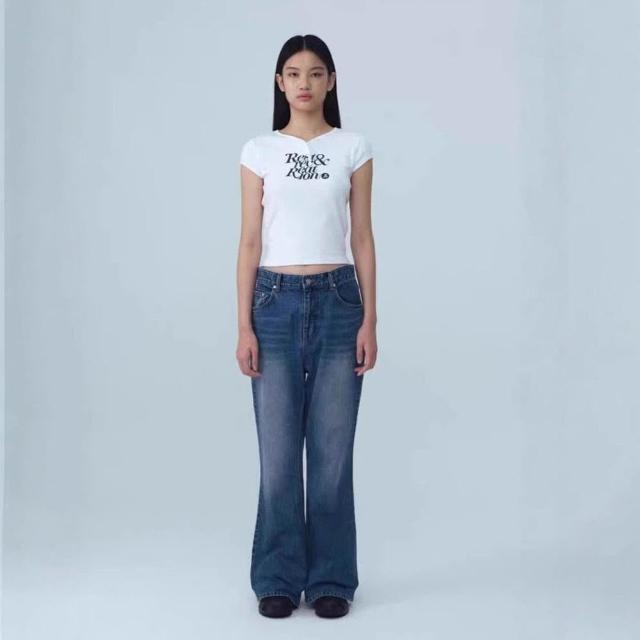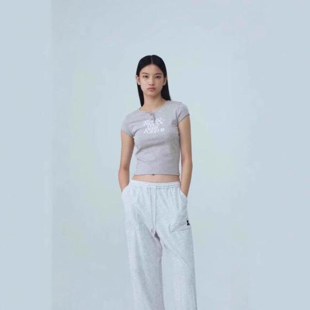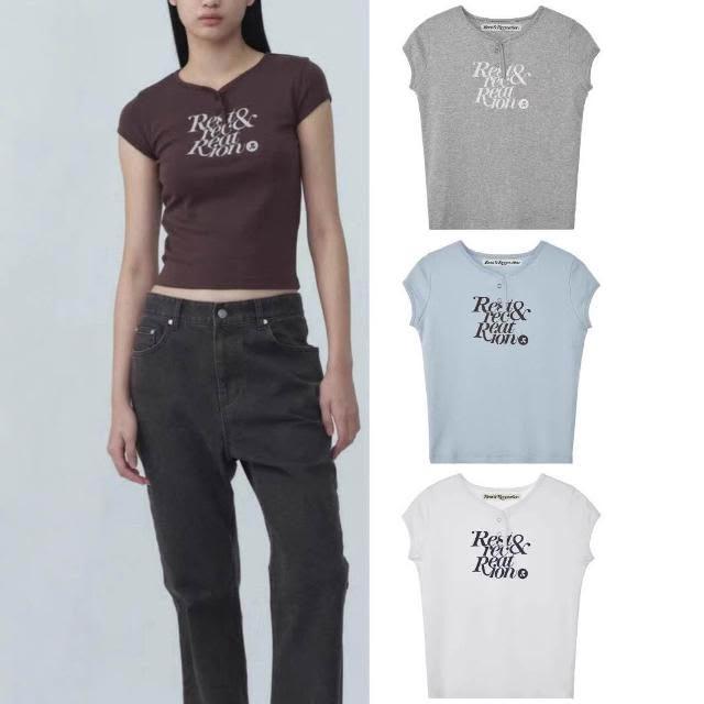 新品 含發票 韓國小眾RR夏季新款字母印花正肩短款t恤修身顯瘦雙扣短袖上衣女