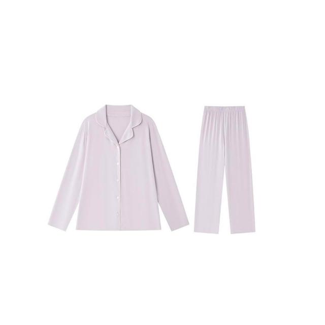 新品 含發票 春夏桑蠶絲家居服女2025新款紐扣寬松長袖睡衣純色外穿翻領套裝