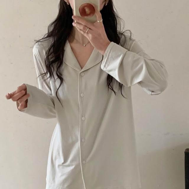 新品 含發票 森島 桑蠶絲家居服女2025春夏新款紐扣長袖睡衣純色外穿寬松套裝
