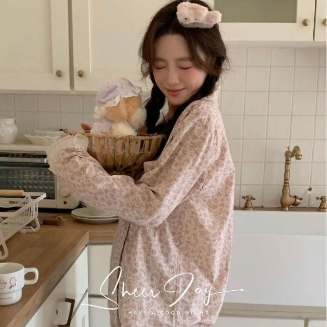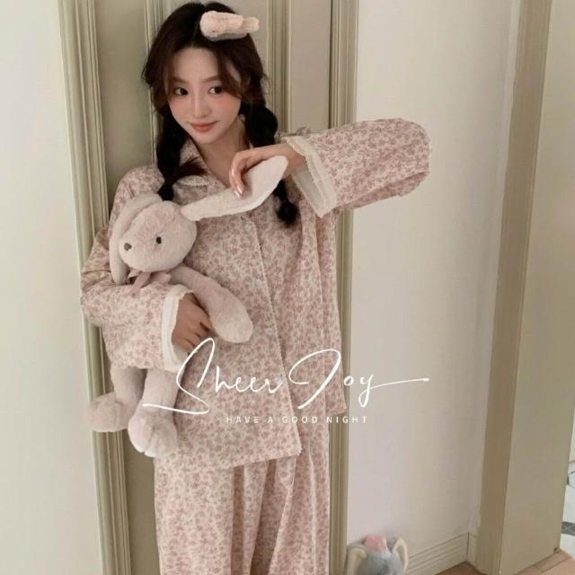 新品 含發票 新款秋季睡衣女水洗棉麻韓版花邊款女士家居服長袖長褲印象巴黎