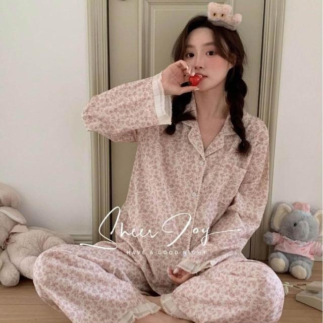 新品 含發票 新款秋季睡衣女水洗棉麻韓版花邊款女士家居服長袖長褲印象巴黎